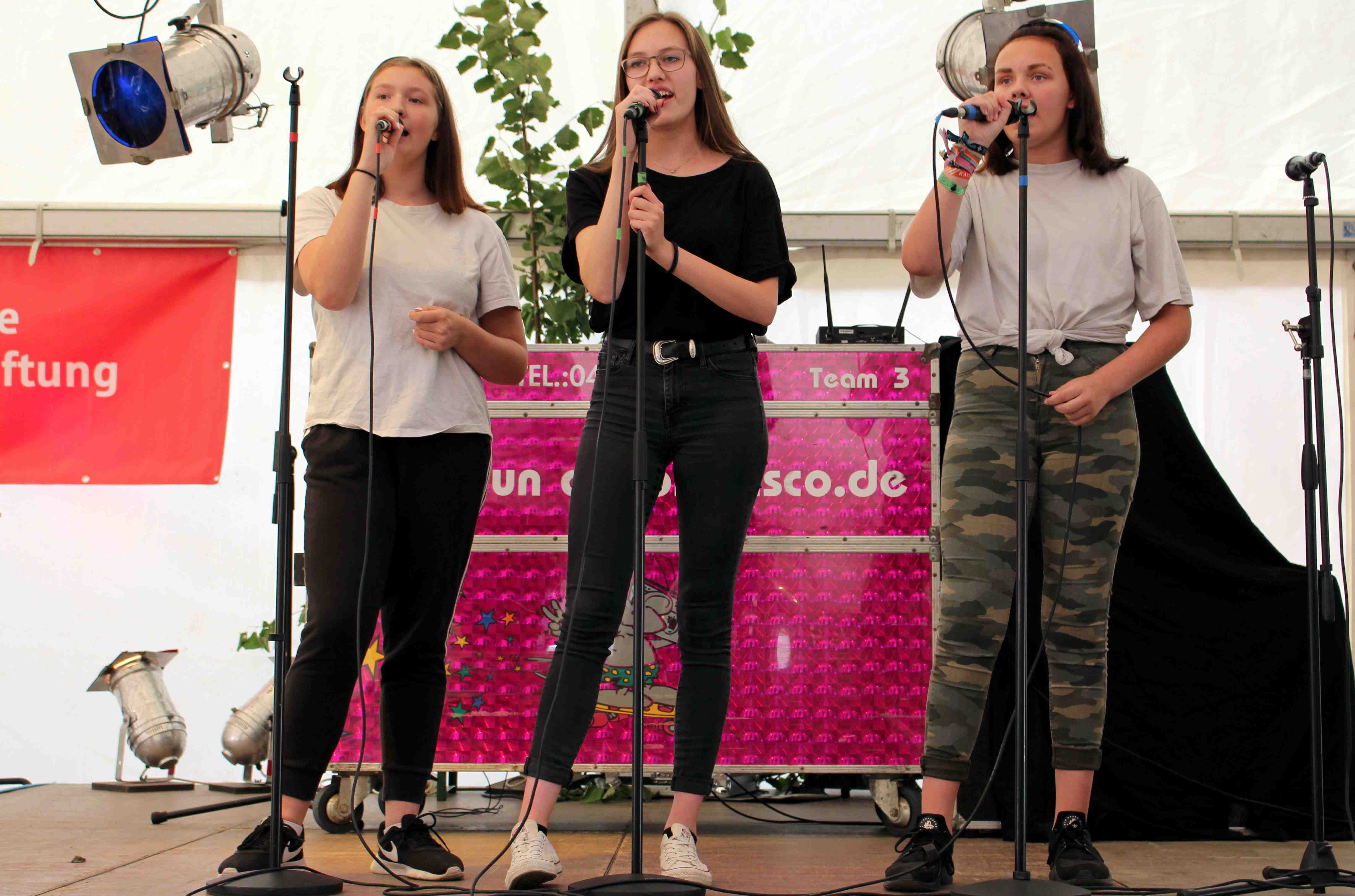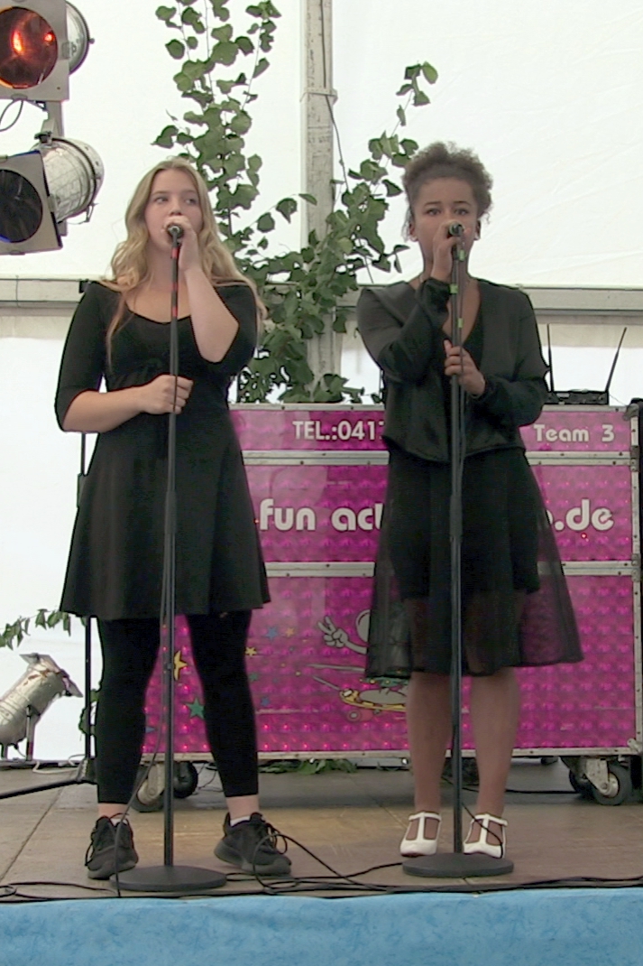 Kiara, Pätty und Celina mussten die Gesangsparts der anderen Hälfte der Band übernehmen, weil die, wegen Zugverspätung, nicht rechtzeitig von der Klassenfahrt zurückkamen. Aber das war für sie kein Problem.