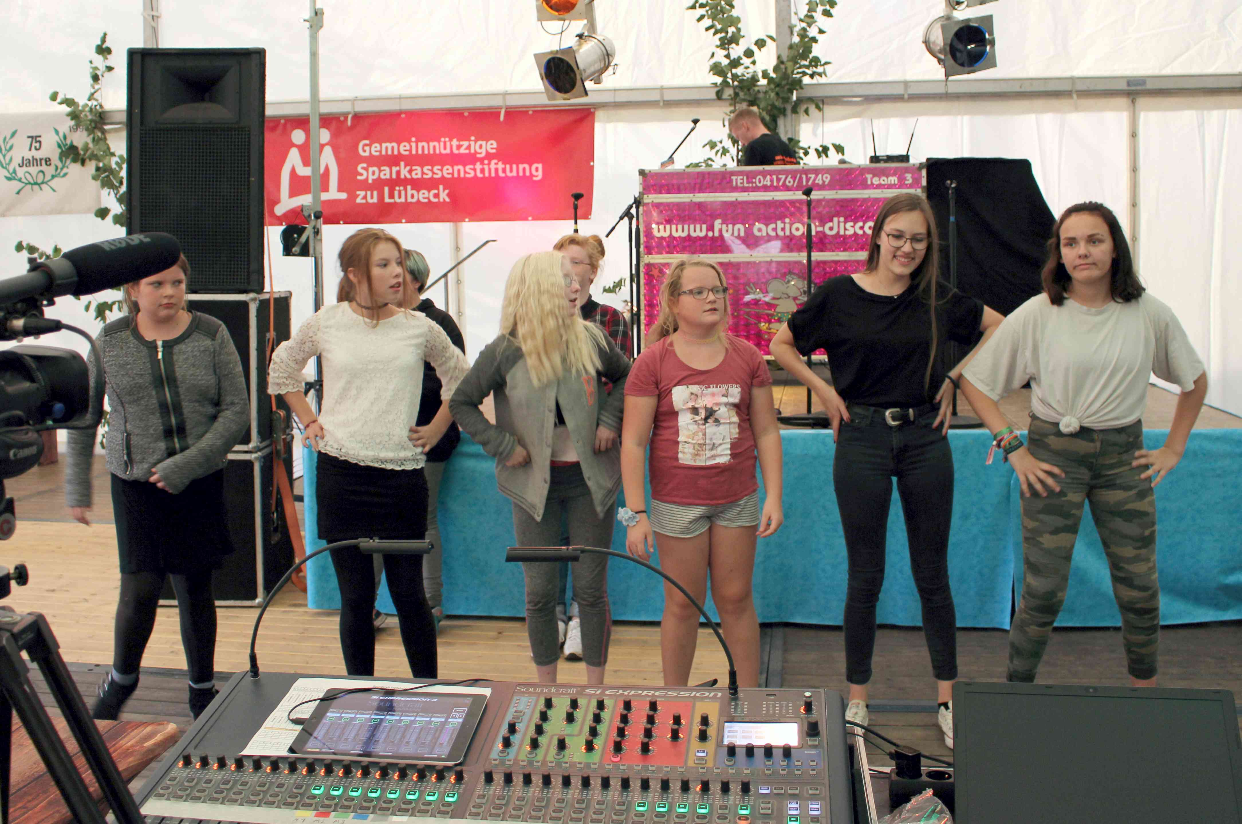 Die Band unter 13, Lilli, Liesa, Fiona, Finja und Anna, war wie immer voll in Fahrt und kennt keine Auftrittsangs mehr.