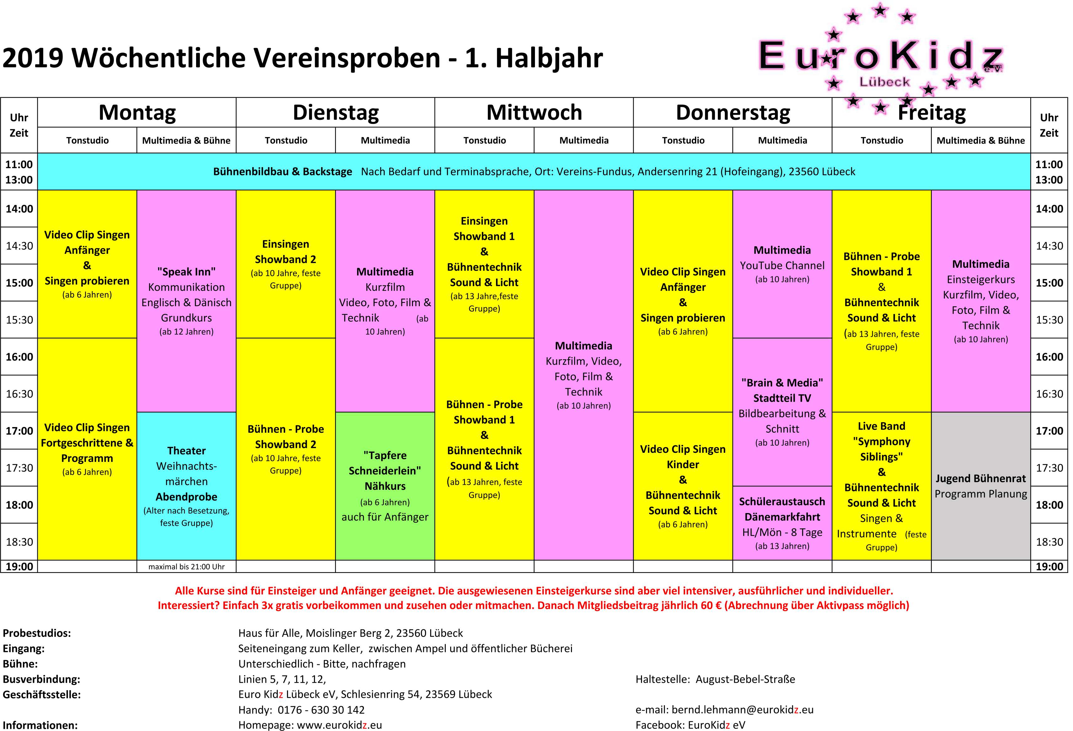 Wir haben große Unterstützung von Eltern bekommen und konnten dadurch für euch noch mehr interessante Kurse planen und einige alte Kurse verbessern und umstrukturiern. Wir freuen uns dich und auf alle, die neugierig sind und vorbeikommen um sich zu informieren was bei den Euro Kidz abgeht. Das volle Programm beginnt am 07.01.2019.