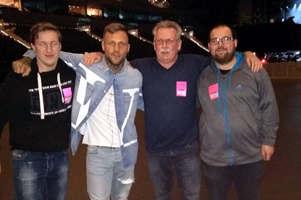 Stellvertretend für die vielen Selfies unserer Mitglieder seht Ihr hier ein Fotos der Bühnentechniker mit Kontra K.