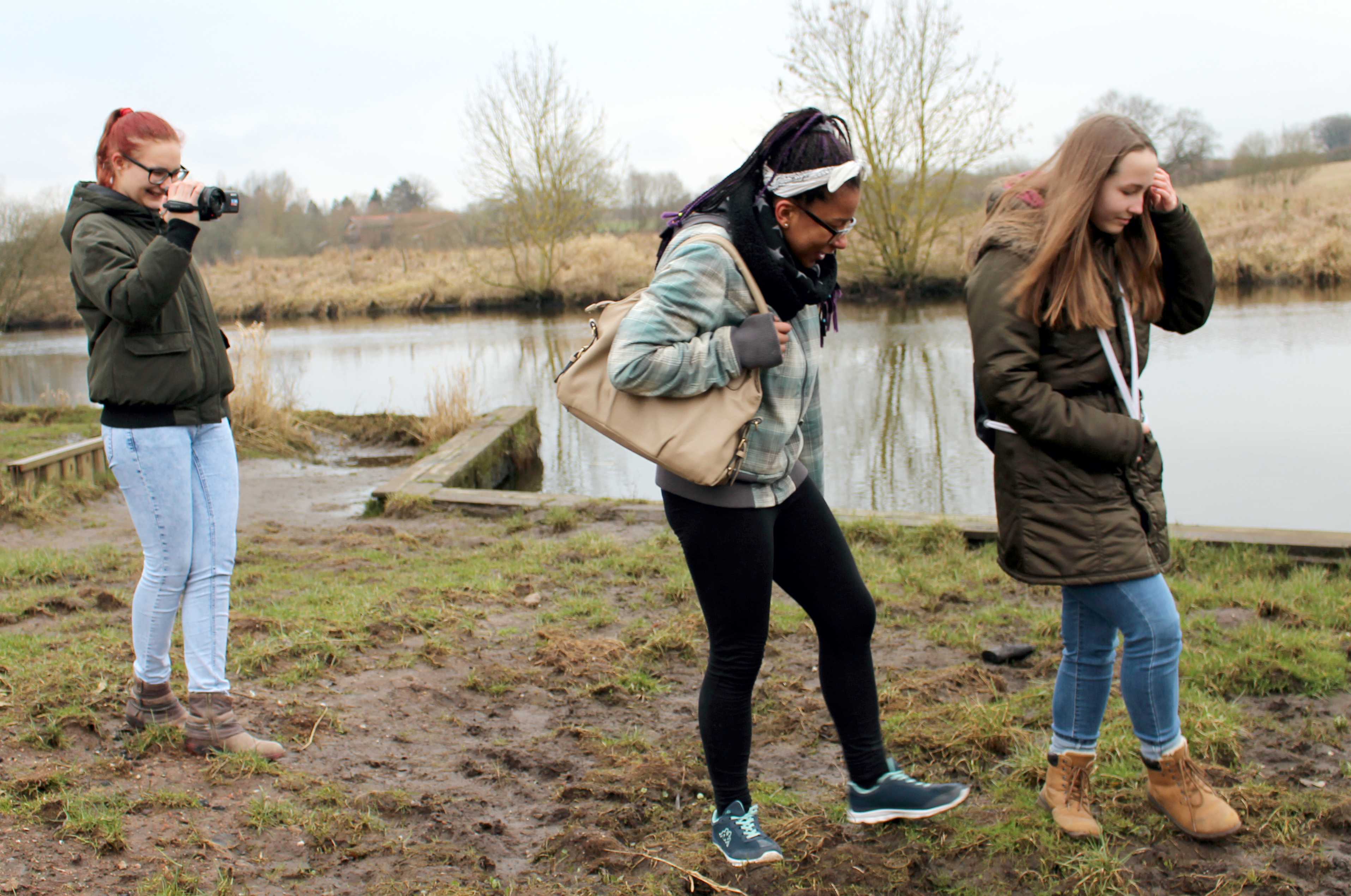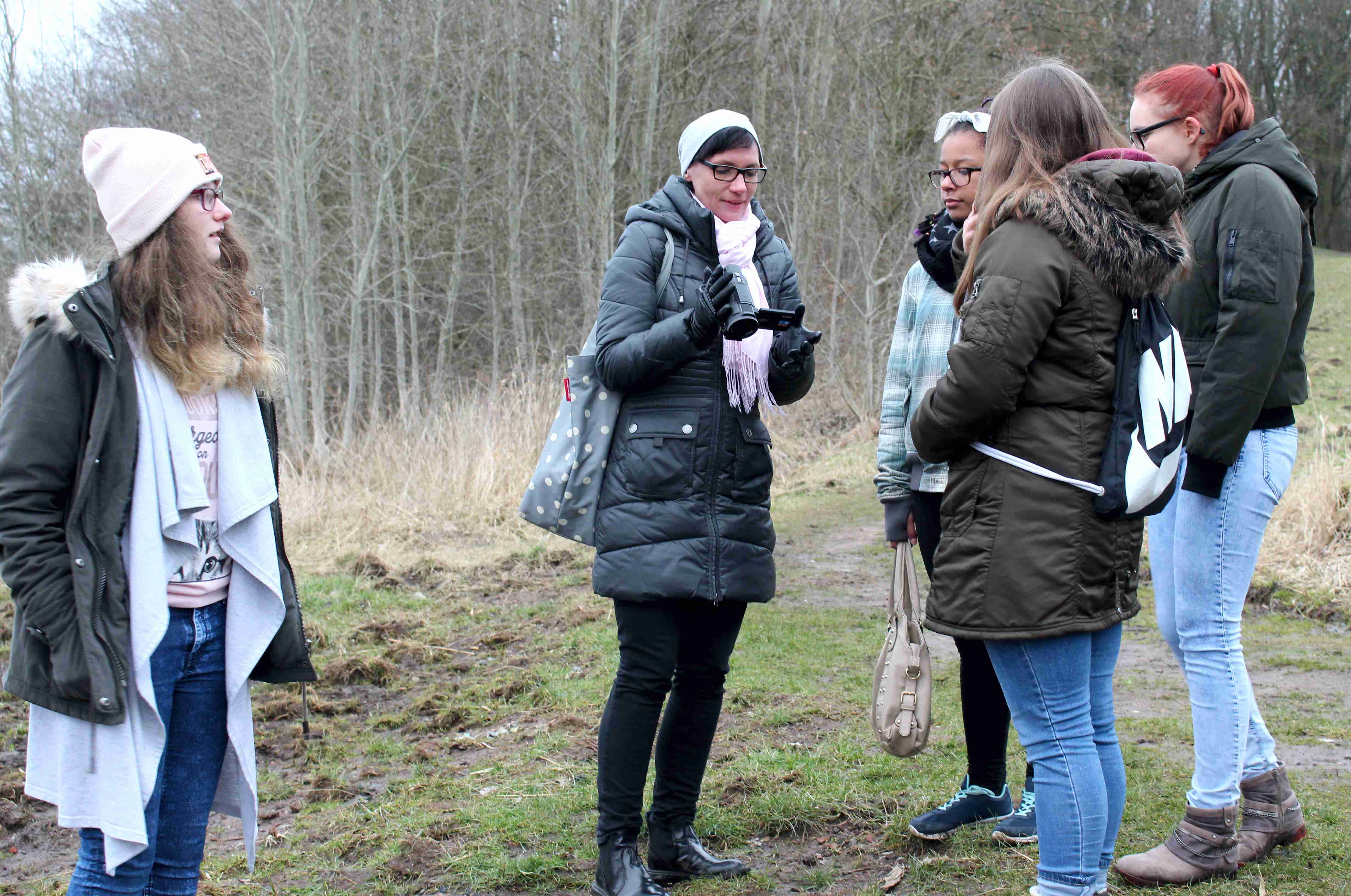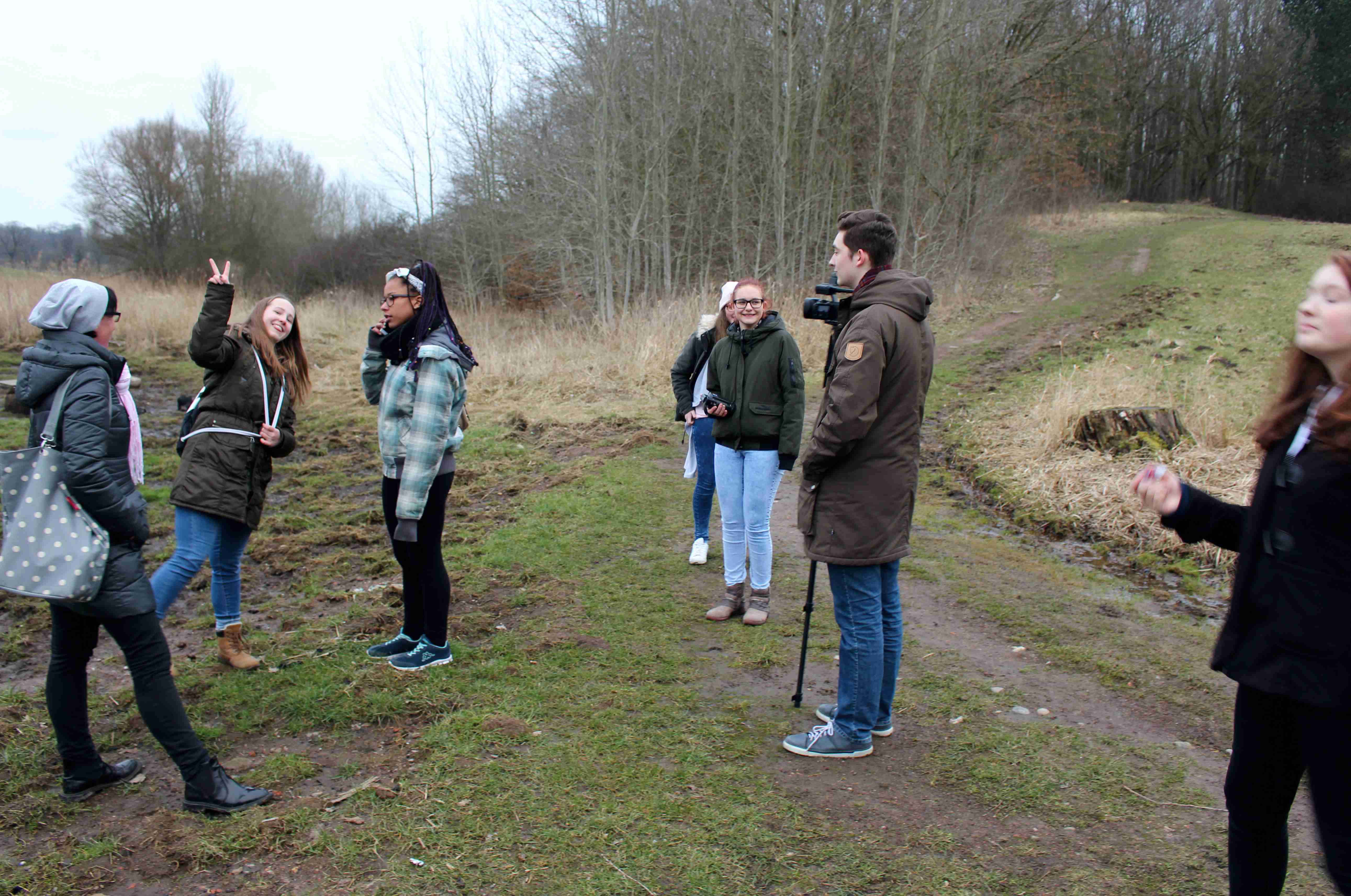 Kamerafrau Scarlet schickt die Reporter ins „Moor“. Die Reporter, Elaisah und Marie, opfern sich und die neuen Schuhe für den Film.