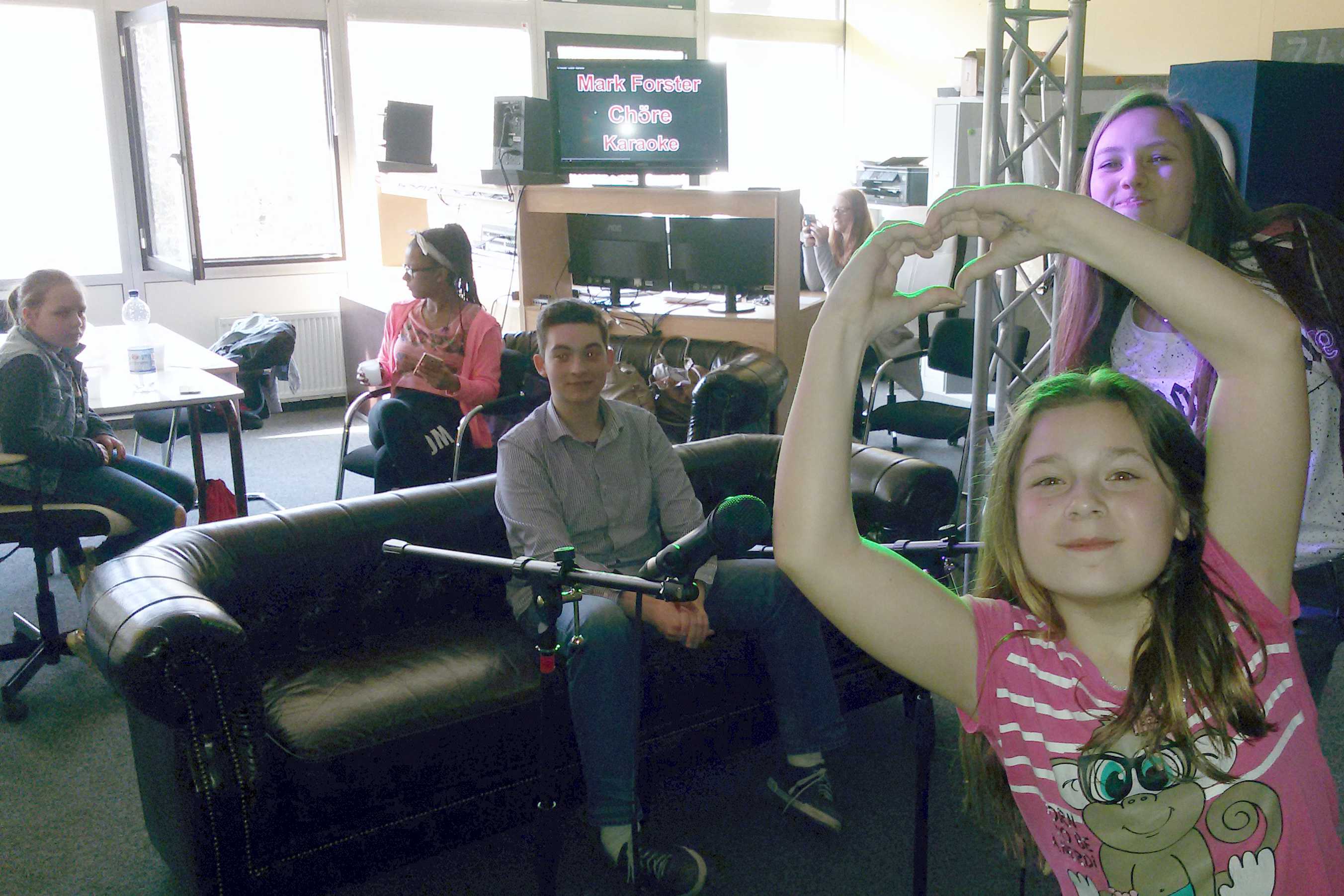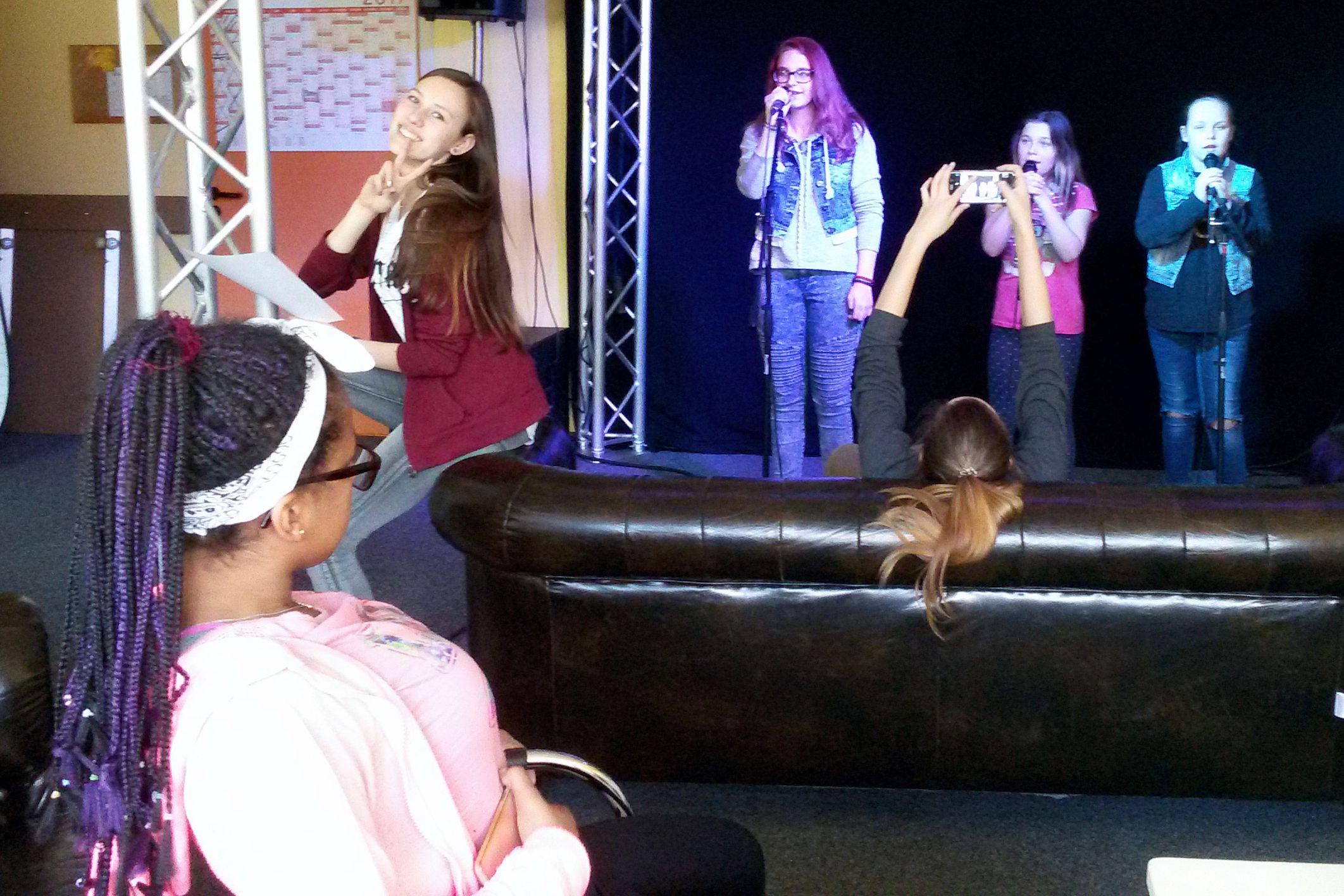 Heute sind gleich drei neue Sängerinnen, Scarlet, Felice und Ashley, gekommen und haben sofort mitgesungen. Weil wir so einen großen Zulauf haben, richten wir unseren siebten wöchentlichen Gesangskurs in Moisling ein.