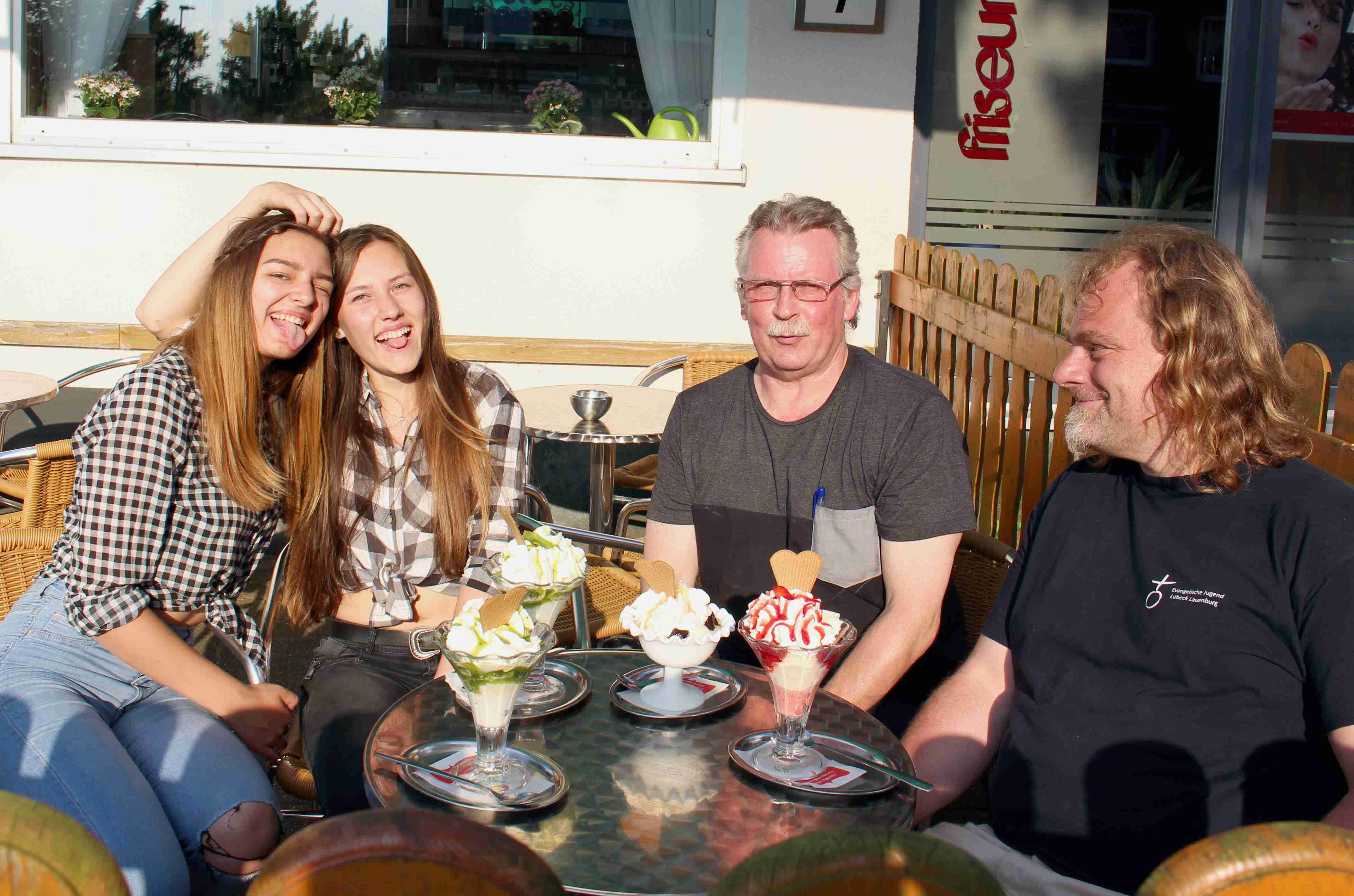 Zur Belohnung für die tolle Leistung unserer aufgetretenen Sängerinnen, Karo, Celina und Pätty und von lars, der uns super Unterstützt hat, hat der Vorstand riesige und schön kalte Eisbecher spendiert. Und wie Du siehst, war die gute Laune sofort wieder da. Celina musste leider schon früher nach Hamburg zurück. Wir haben ihr aber einen Eisbecher reserviert.