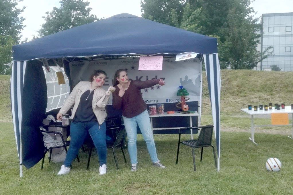 Cheyenne und Alina vor unserem Schminkzelt. Daneben wurden Kinder und Jugendliche mit vielen Spielen unterhalten. Es hat allen viel Spaß.