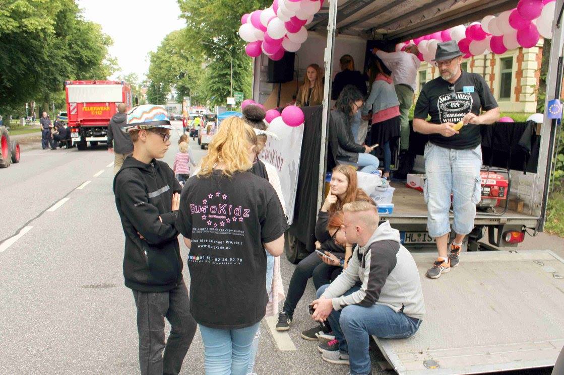 DJ Markus hat für Stimmungsmusik und Live-Ansagen auf dem Umzugswagen gesorgt. Für den Strom hatten wir einen eigenen Stromgenerator.