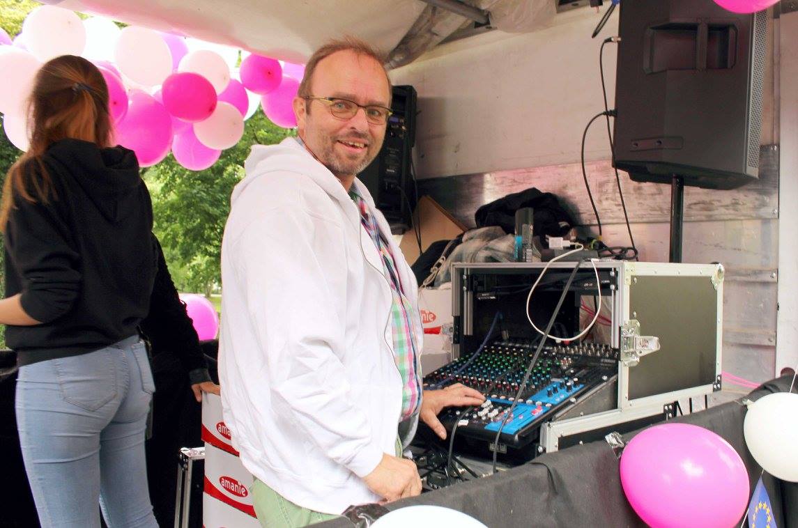 DJ Markus hat für Stimmungsmusik und Live-Ansagen auf dem Umzugswagen gesorgt. Für den Strom hatten wir einen eigenen Stromgenerator.