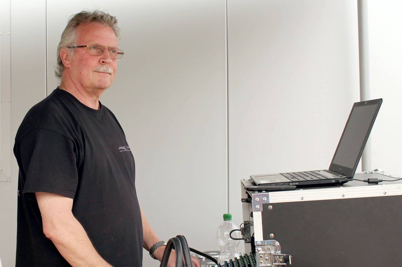 Skeptischer Blick zur Bühne. Hoffentlich kommt keine Regenwasser in die Anlage.
