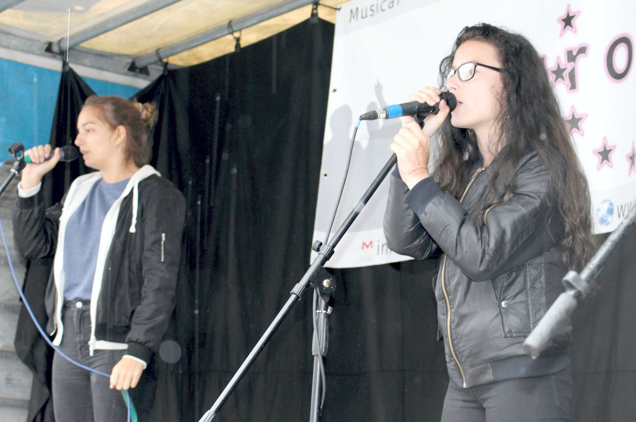 Karo und Nicole singen unbeeindruckt ihr Programm.