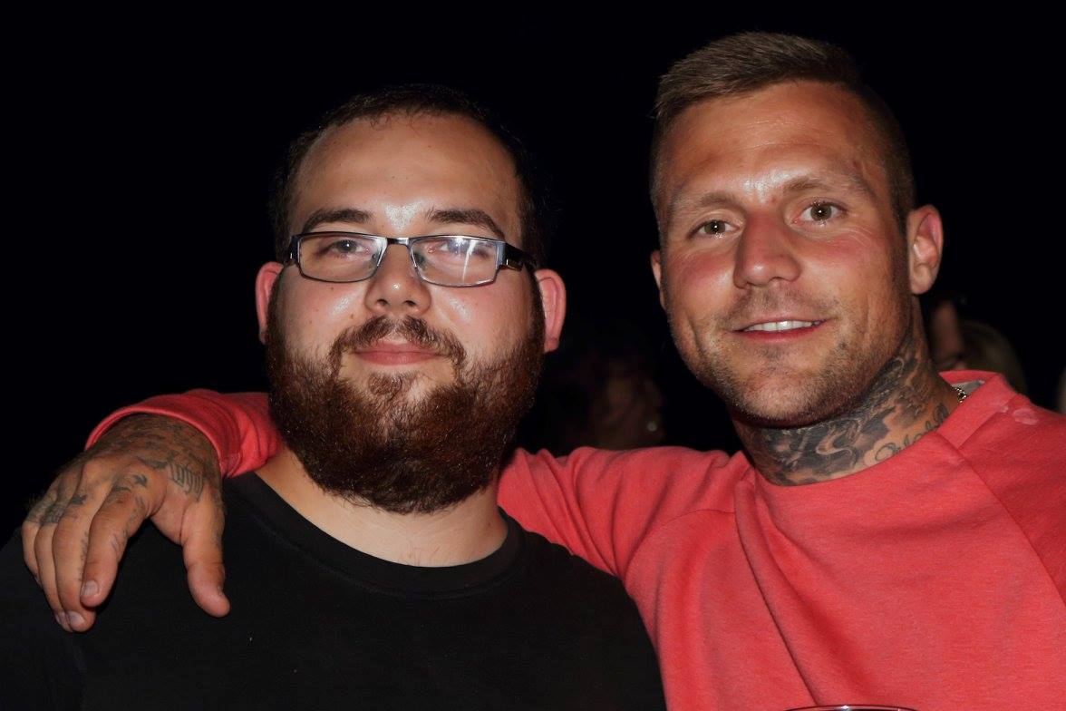 KONTRA K bekommt unser Vereins T-Shirt geschenkt. Leah, Shano, Kontra K, Karo, Nicole, Elaisah, Pätty.