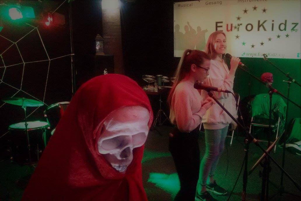 EUCH ALLEN EIN SCHÖNES HALLOWEEN. Unsere Sängerinnen haben das Tonstudio in eine Schreckenskammer verzaubert.