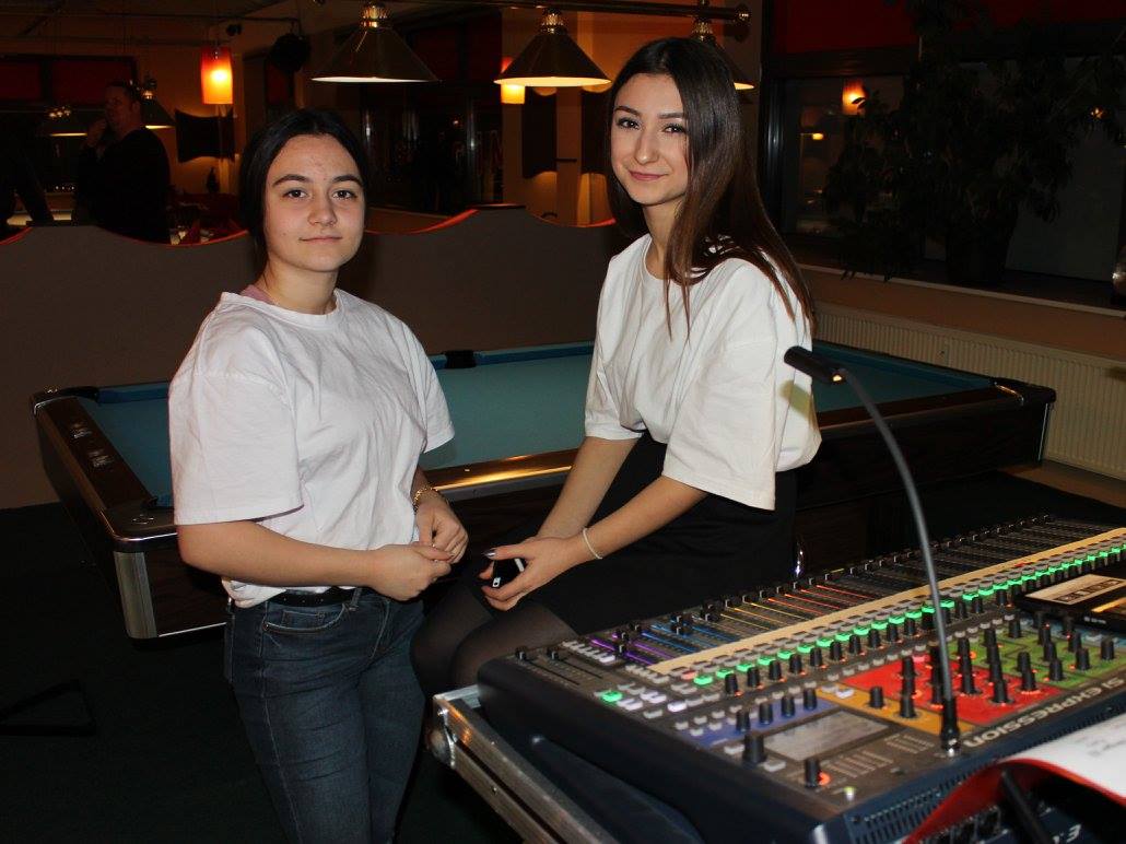 Aleyna und Shanaz bewachen die Technik bis zum Auftritt.