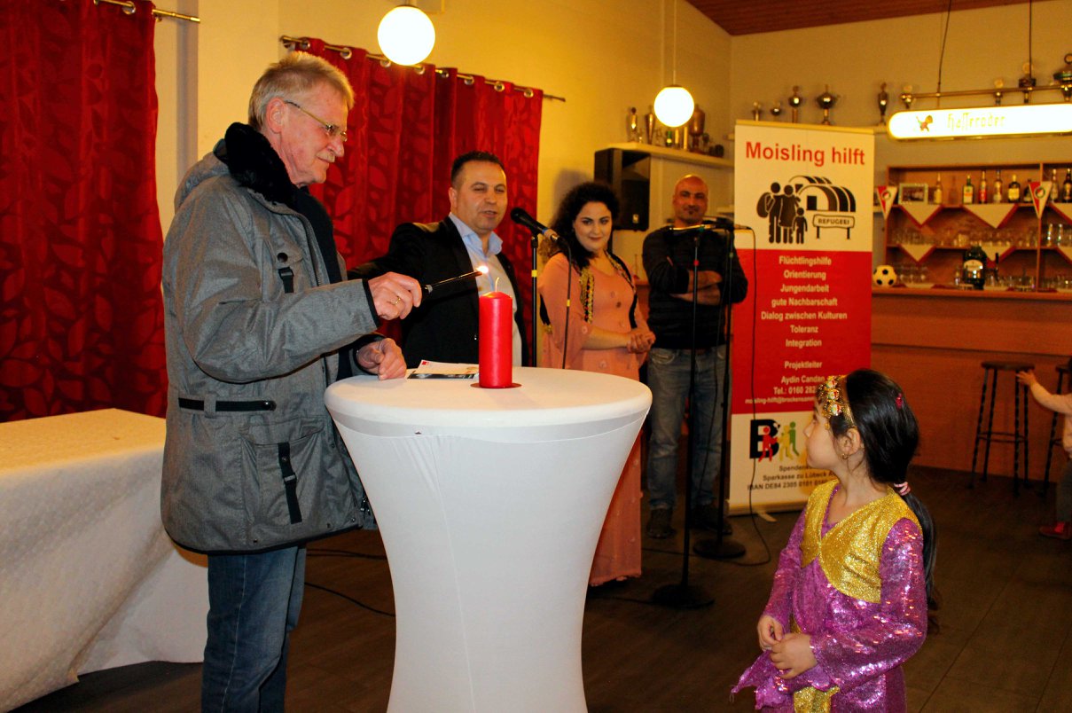 Ansprache zum Newroz-Fest vom Bürgerschaftsmitglied Aydin Candan, Bernd und weiteren Unterstützern von Moisling hilft.