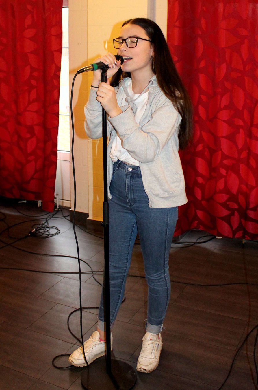 Leonie beim Soundcheck für ihren ersten Auftritt.