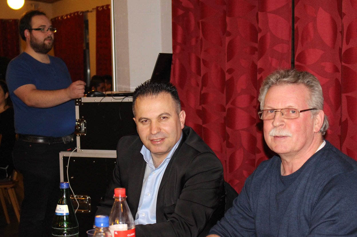 .Zufriedene Gesichter. Die Veramstaltung läuft und die Stimmung ist gut. Tim bedient die Technik und Aydin und Bernd „kontrollieren“ alles ![]()