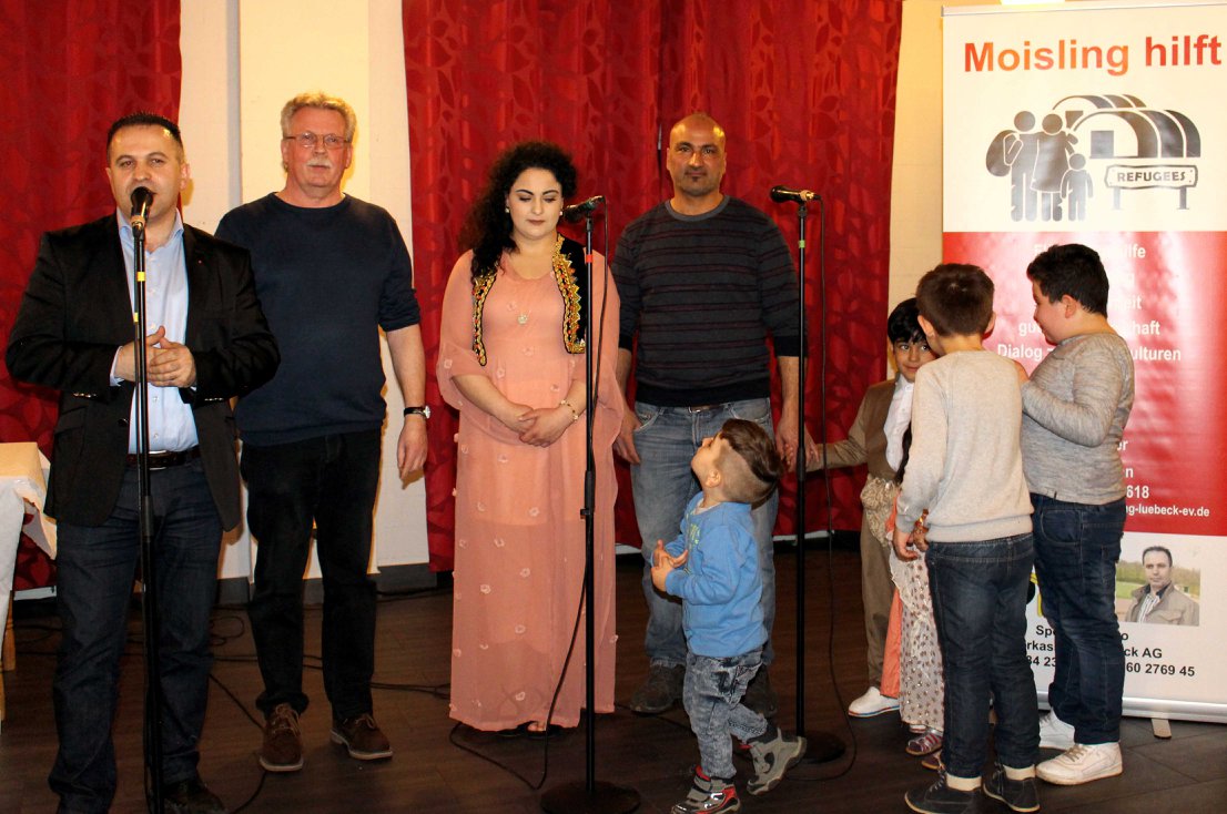 Ansprache zum Newroz-Fest vom Bürgerschaftsmitglied Aydin Candan, Bernd und weiteren Unterstützern von Moisling hilft.