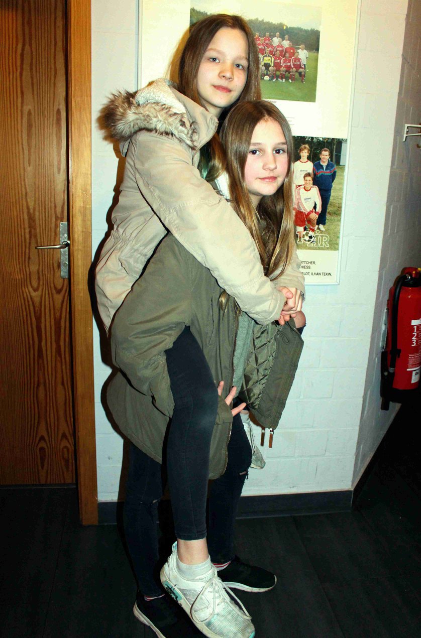 „Auflockerungsübungen“ vor dem Gesangs-Auftritt von Leah und Leonie, für ihre Auftrittspremiere.