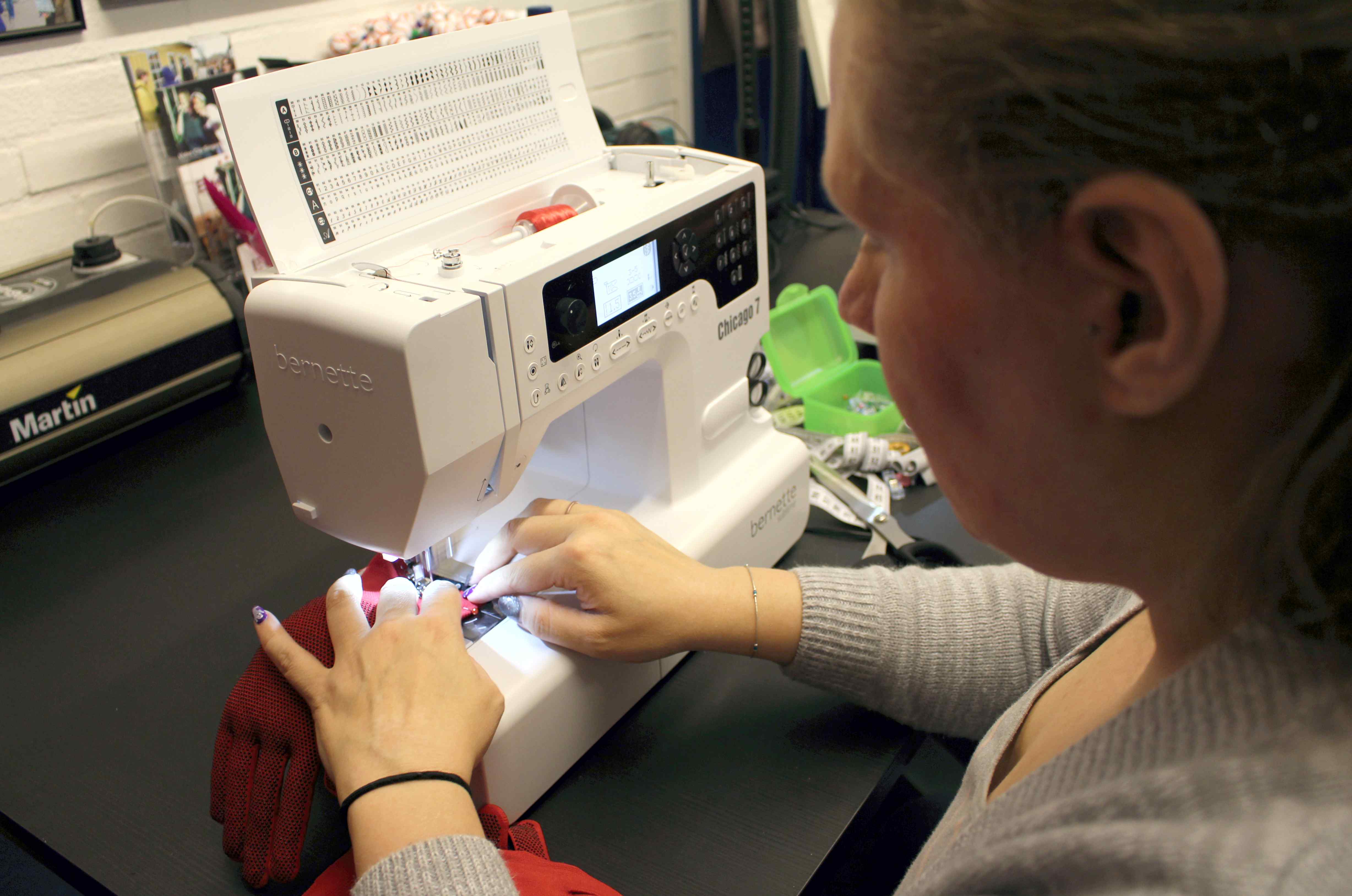 So sieht nähen in der Nahaufnahme aus. Bei Janina sieht es sehr professionell aus.