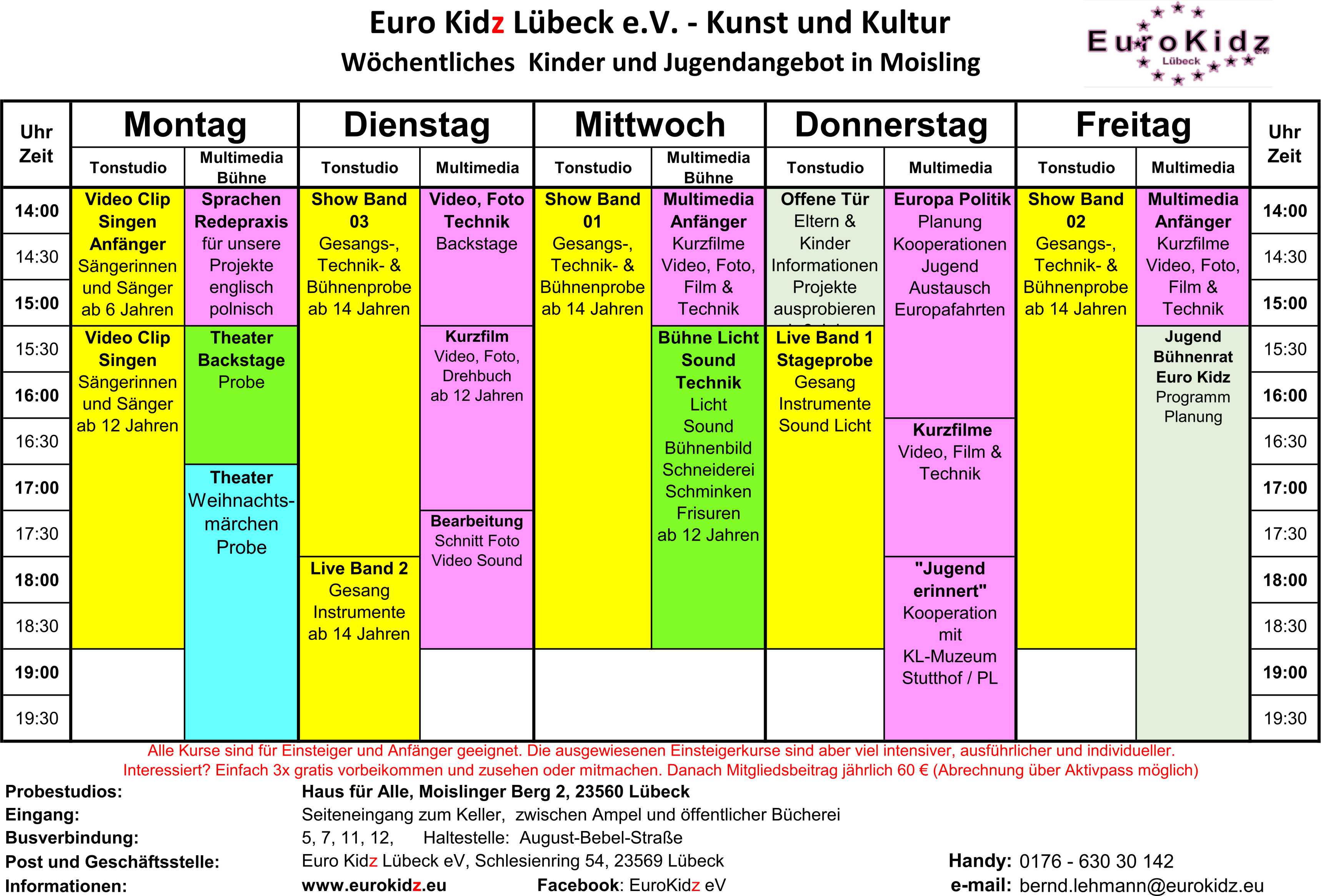 Ab 12. August 2019 haben wir noch mehr neue und interessante Angebote und längere Öffnungszeiten. Es ändern sich einige Anfangszeiten und verschiedene Projekte sind auf einen anderen Wochentag verlegt worden. Alle Infos hier: