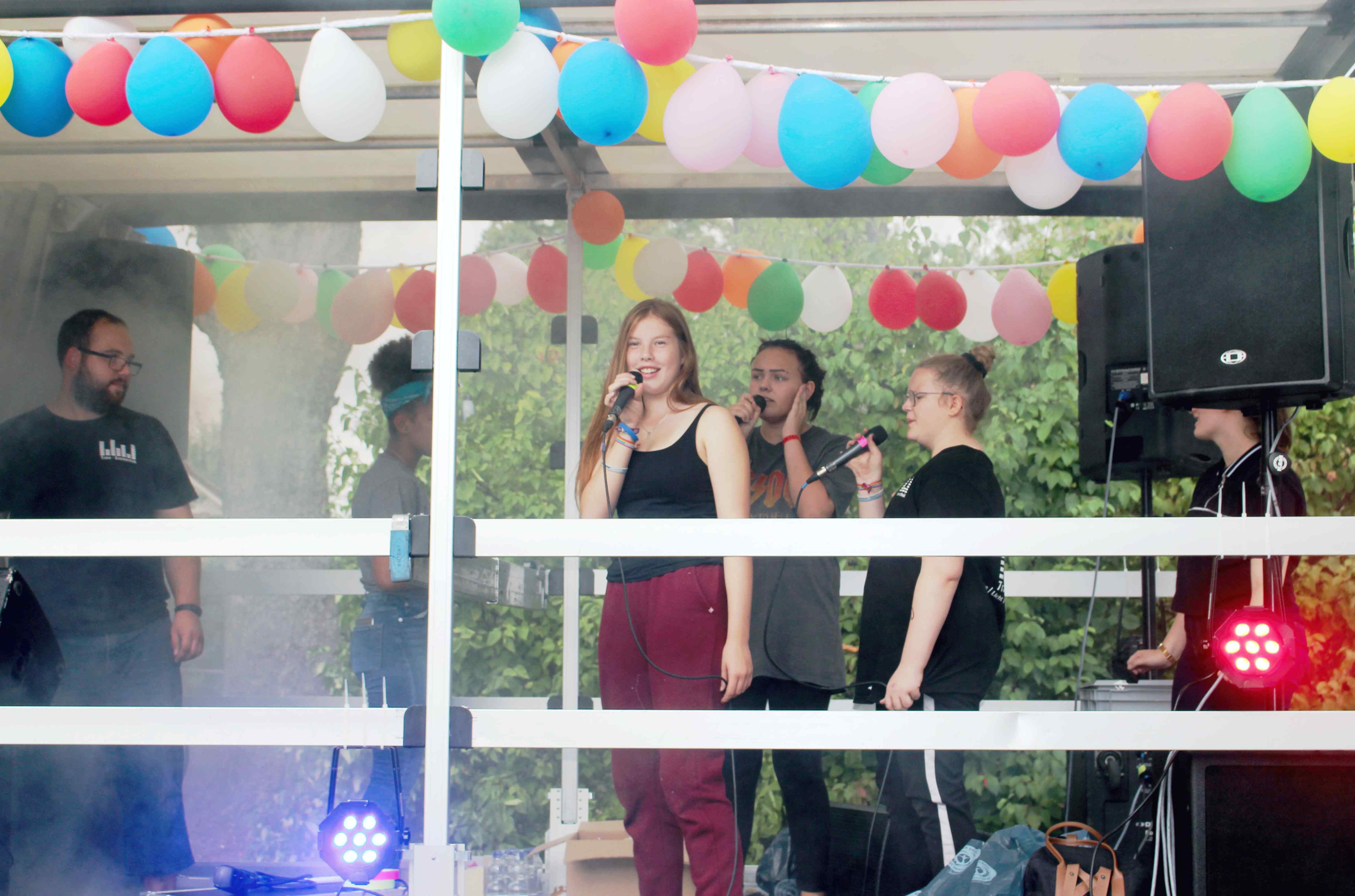 Und immer wieder wird gesungen. Tim an der Technik, Gast und Marie werfen Bonbons, Lilli singt, Wiktoria unterhält sich mit dem Pätty-Drachen.