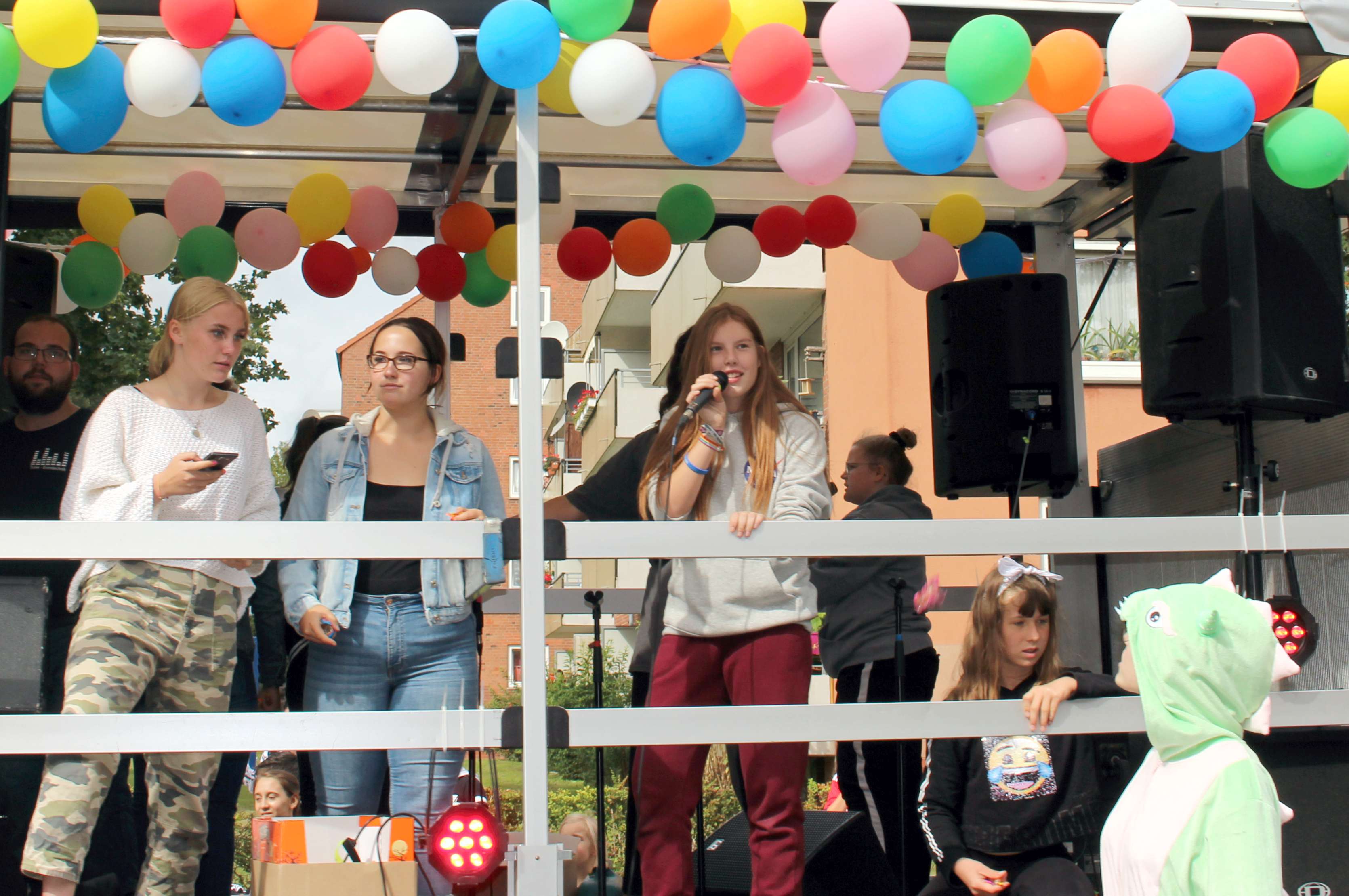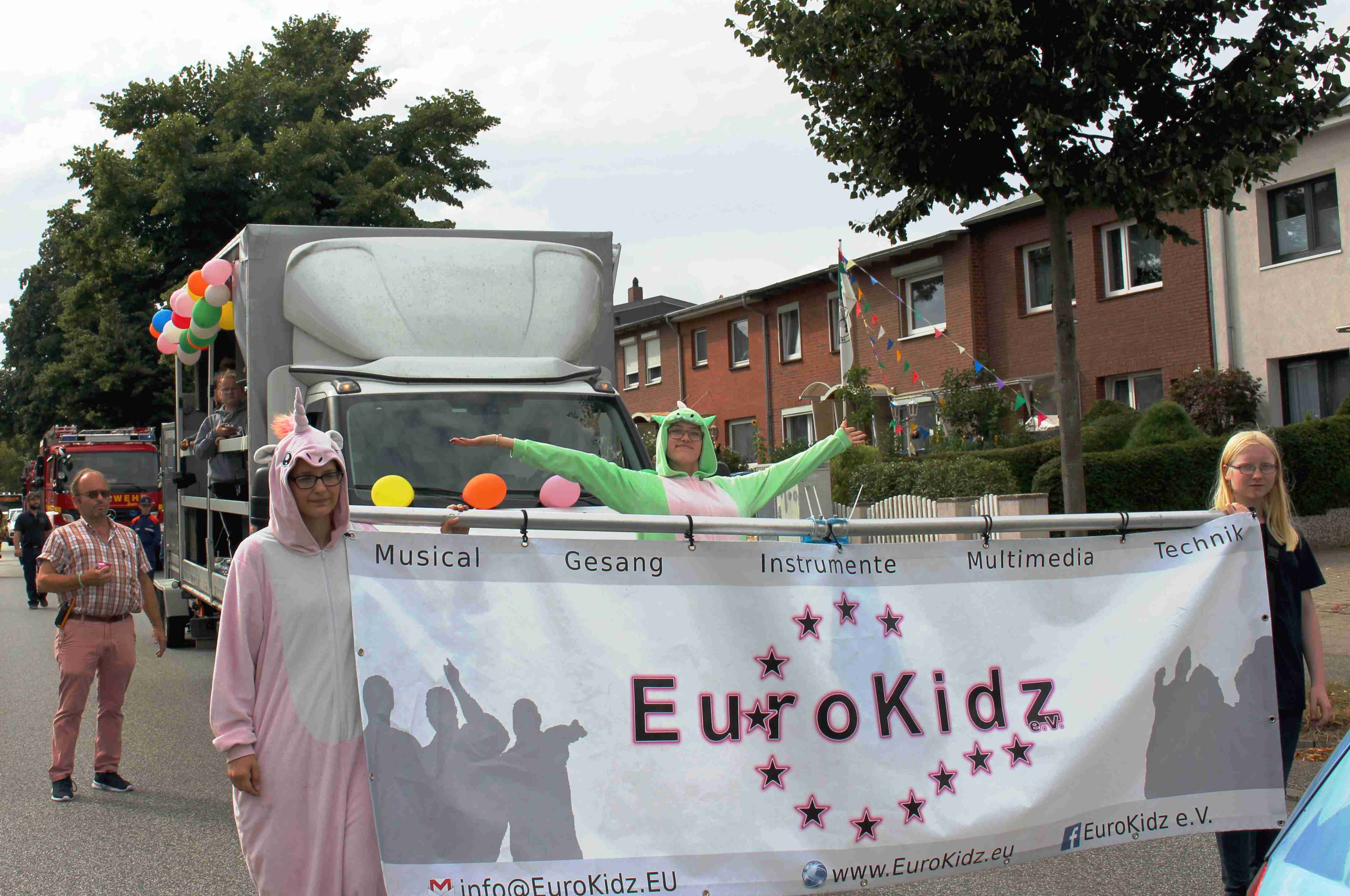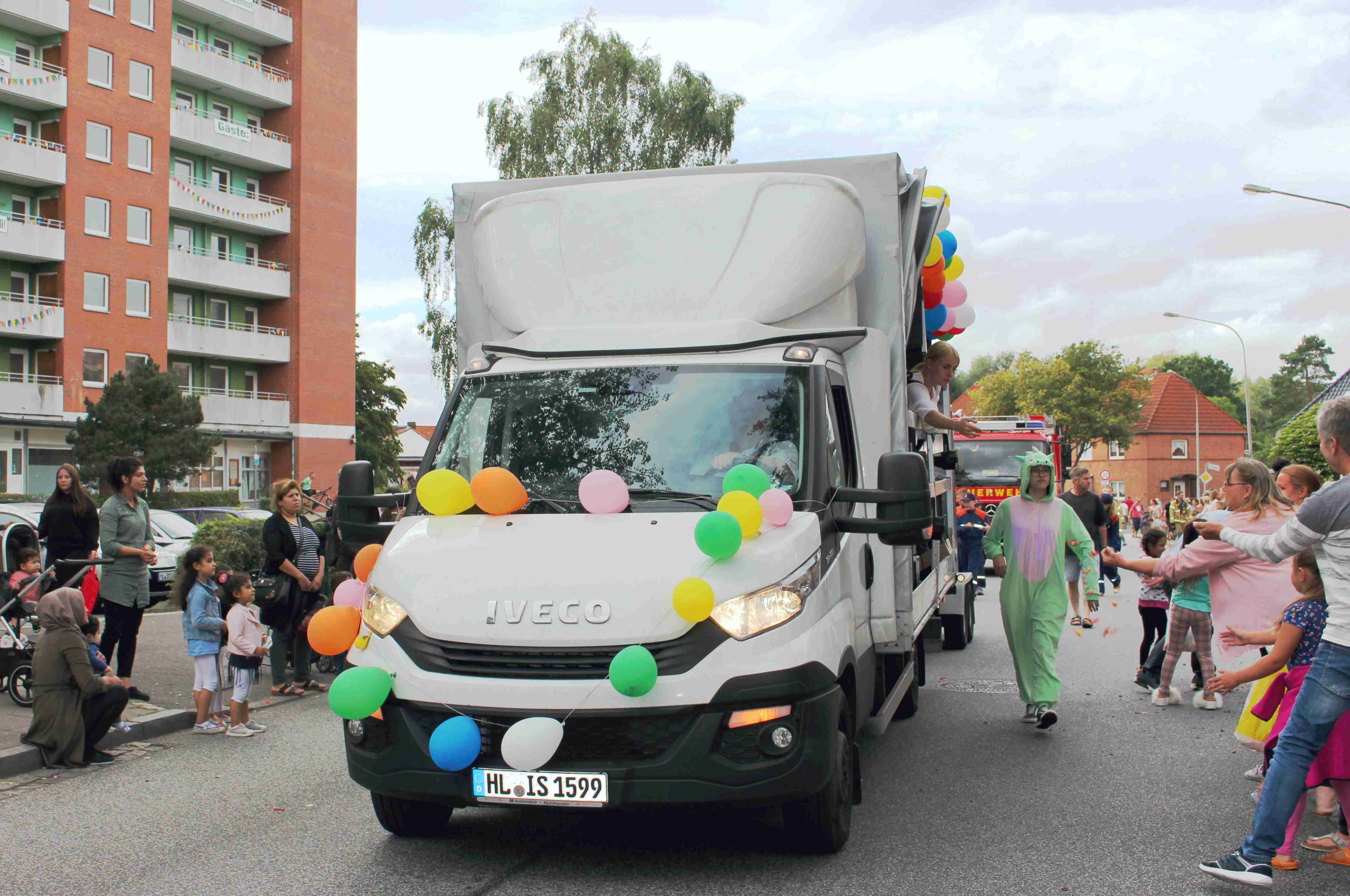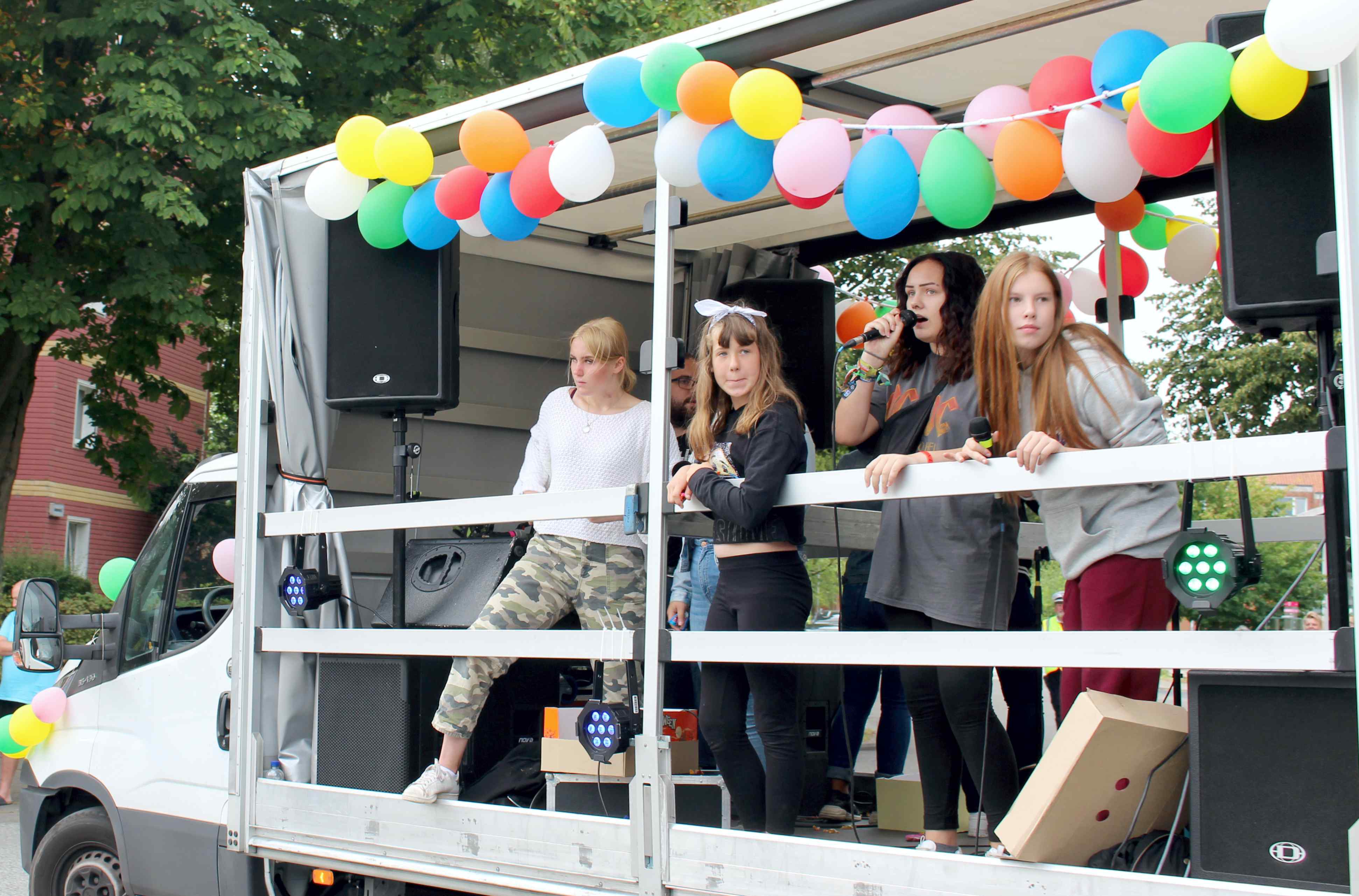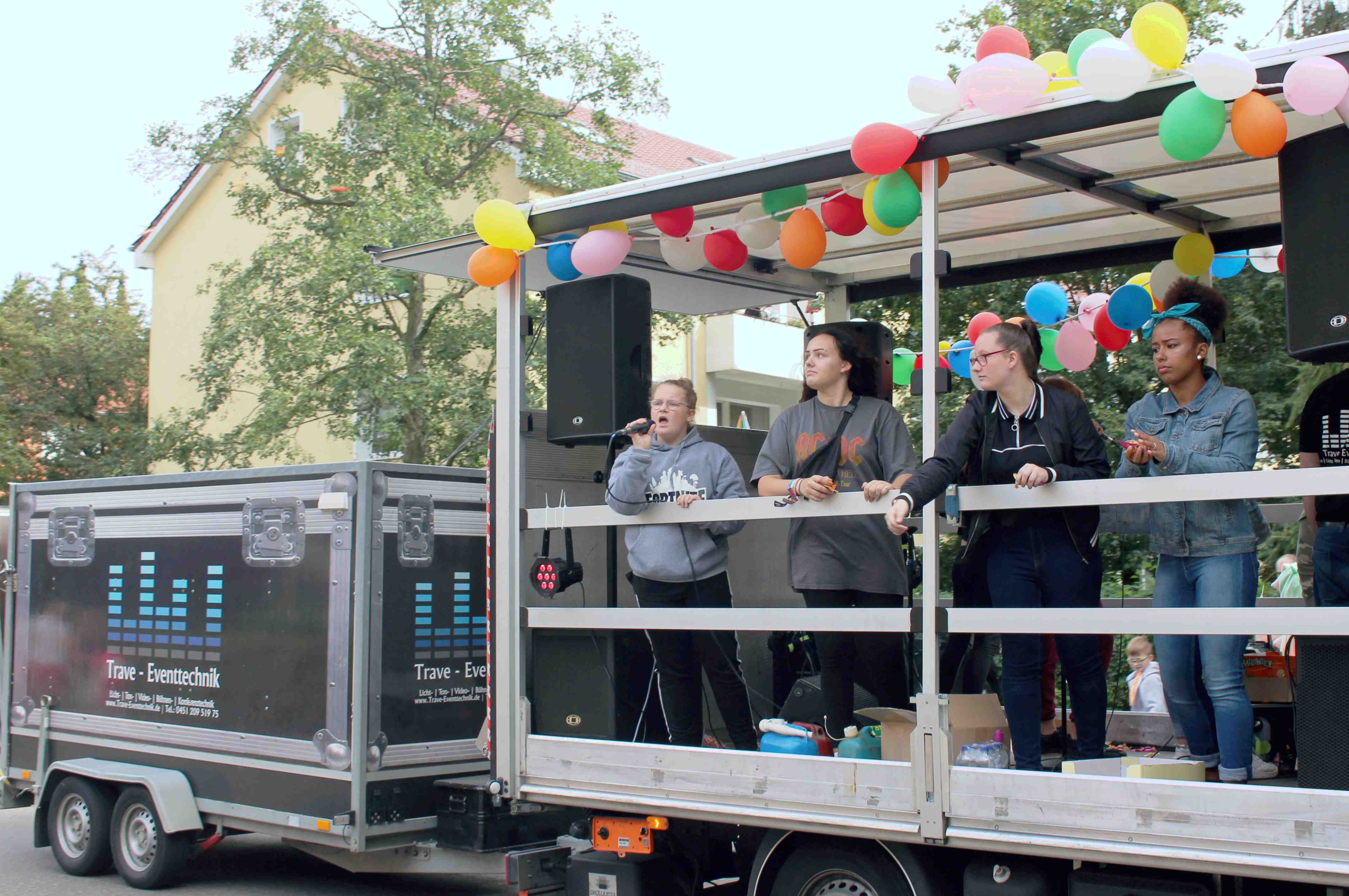 „Jaaaa….“, „Bravo“, „Sattes Progamm“ rufen die Jugendlichen und die Erwachsenen Zuschauer als unser Festwagen beim Schützenumzug in Moisling durch die Straßen fährt. Auf dem von unseren Jugendlichen geschmückten Wagen steht eine Auswahl unserer Sängerinnen im Alter von 11 bis 14 Jahren und singen live aktuelle Schlager und Oldies.