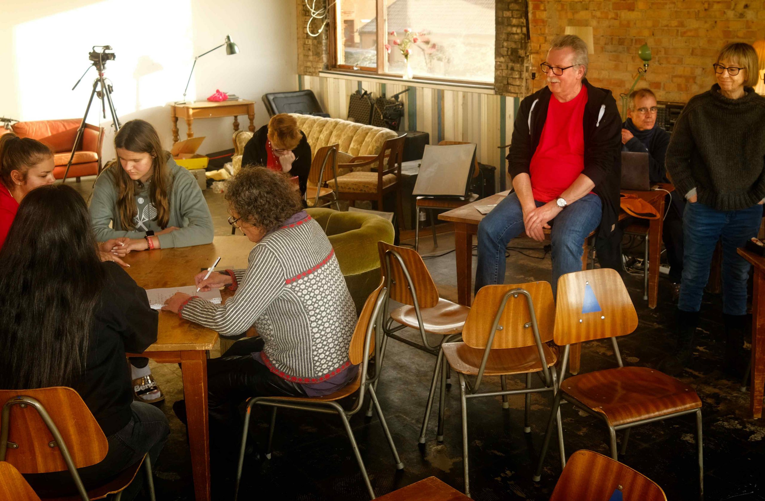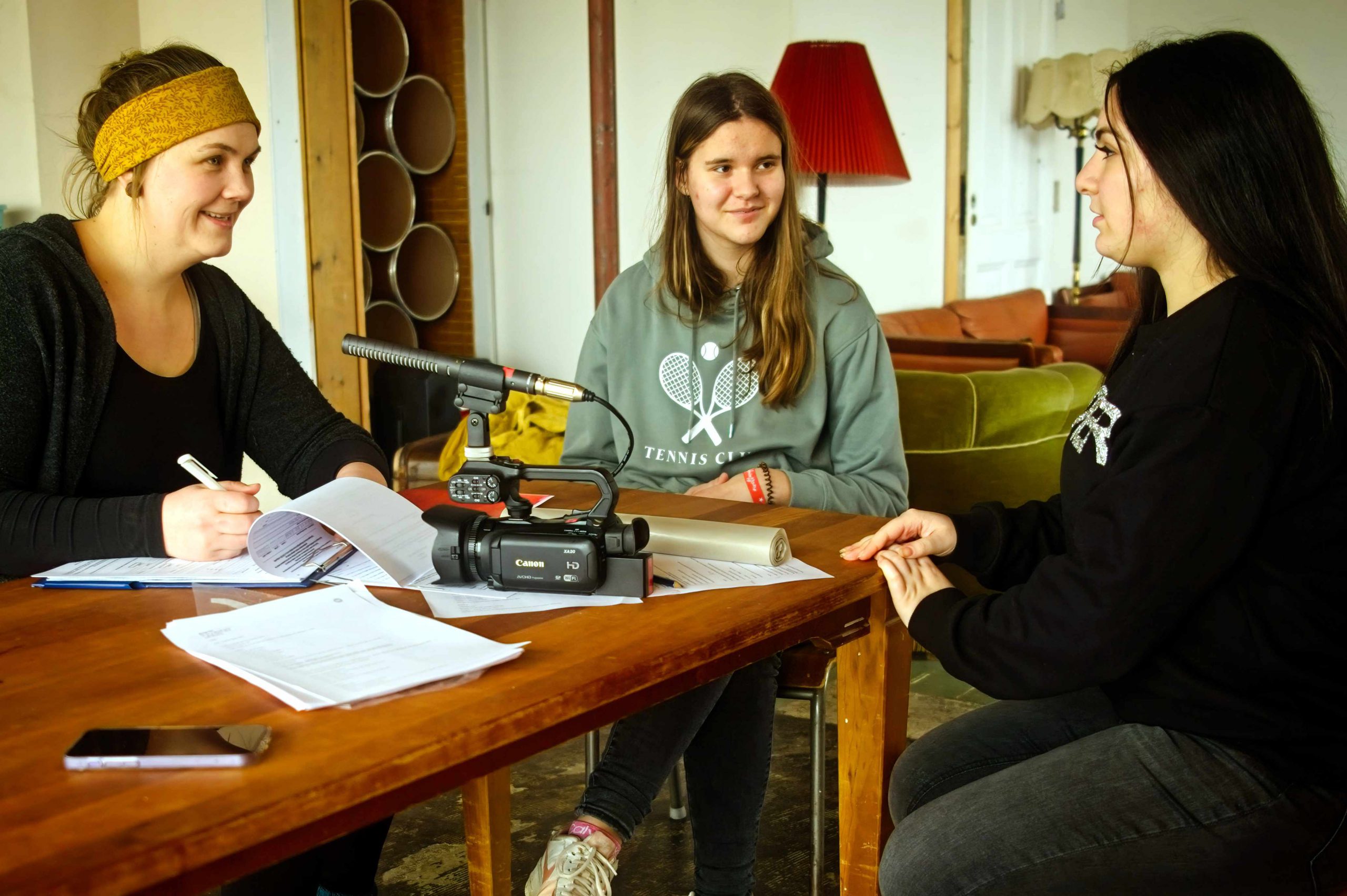 Etwas Papierkram gehört auf jeden Fall dazu. Von links: Edda, Sophie, Wadallah nehmen es gelassen hin.