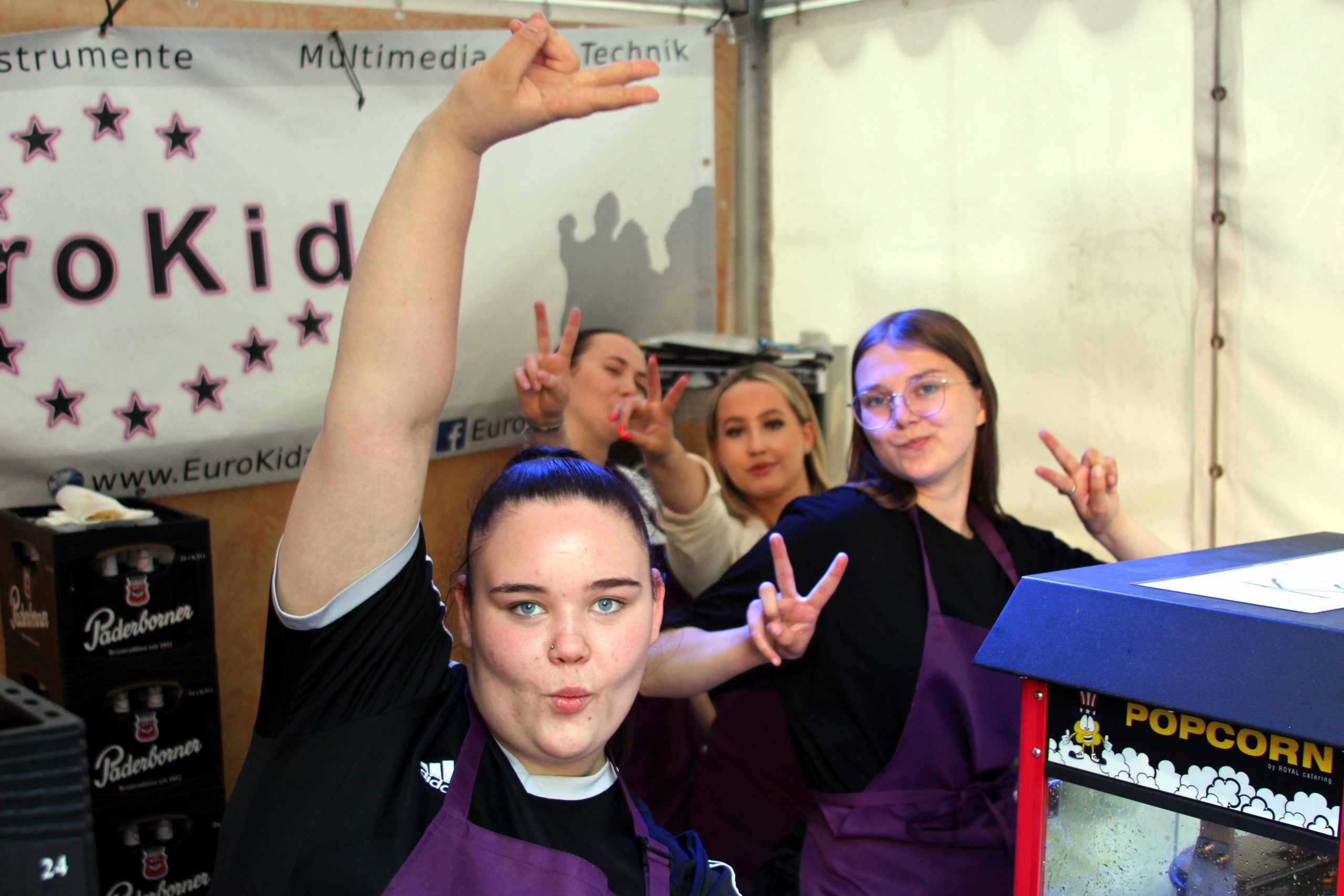 Verkaufszelt eingerichtet, unsere Mitglieder hochmotiviert. Sophia, Regina, Marie und Leonie