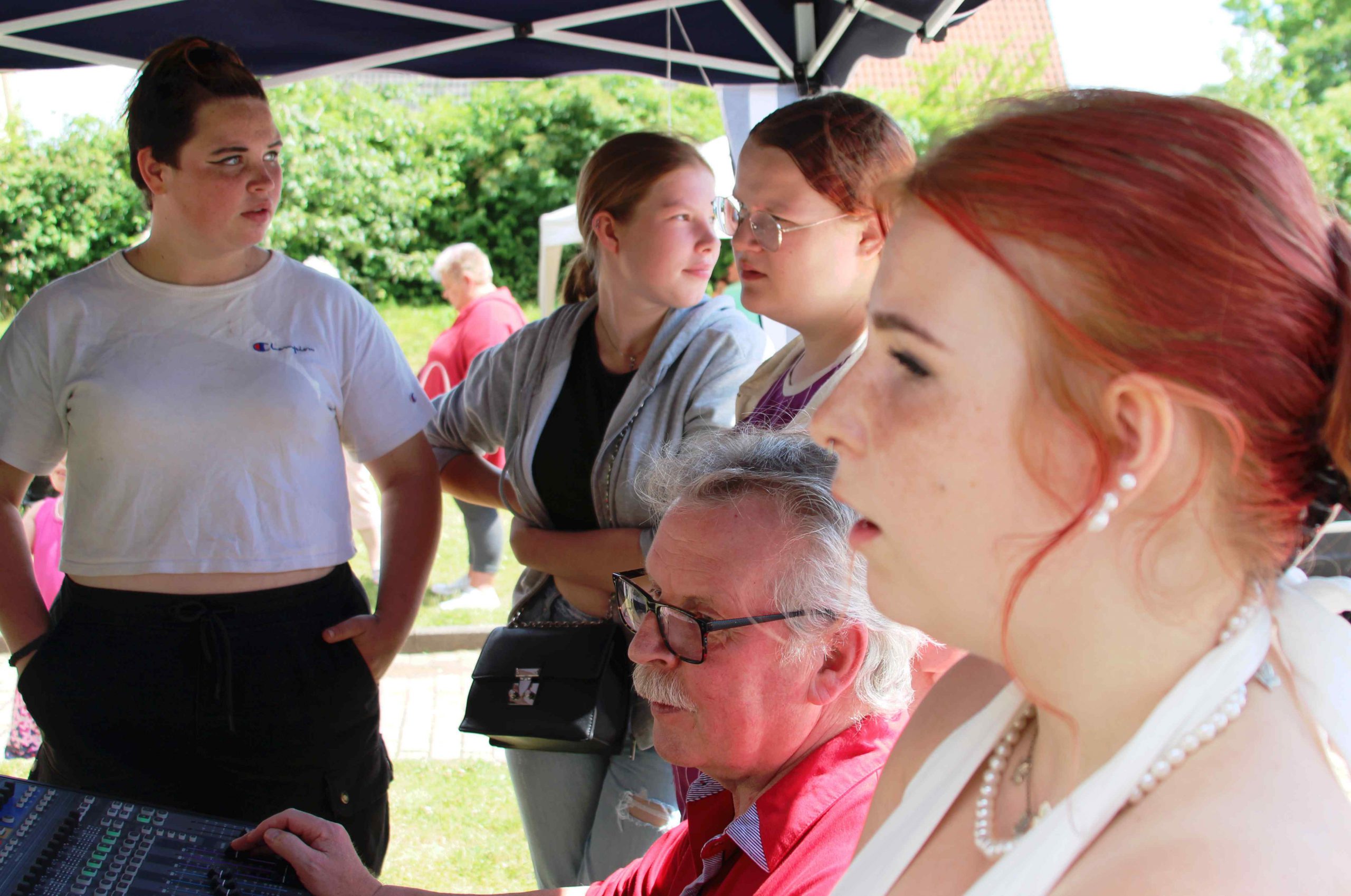 Gegen Mittag wurde es dann voll an unserem Stand. Jana, Lilli, Fiona, Bernd und Finnja staunen nicht schlecht, was der Nachwuchs sich traut.