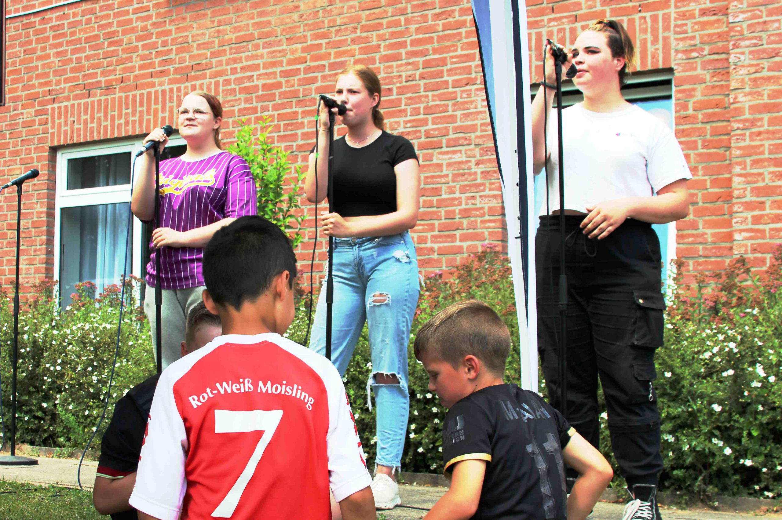 Überraschend haben uns die Mädchen unserer ersten Showband, Fiona, Lilli und Jana, aus Moisling besucht und gezeigt, dass sie vom Gelernten nichts vergessen haben und noch einmal ihr altes Programm gesungen.