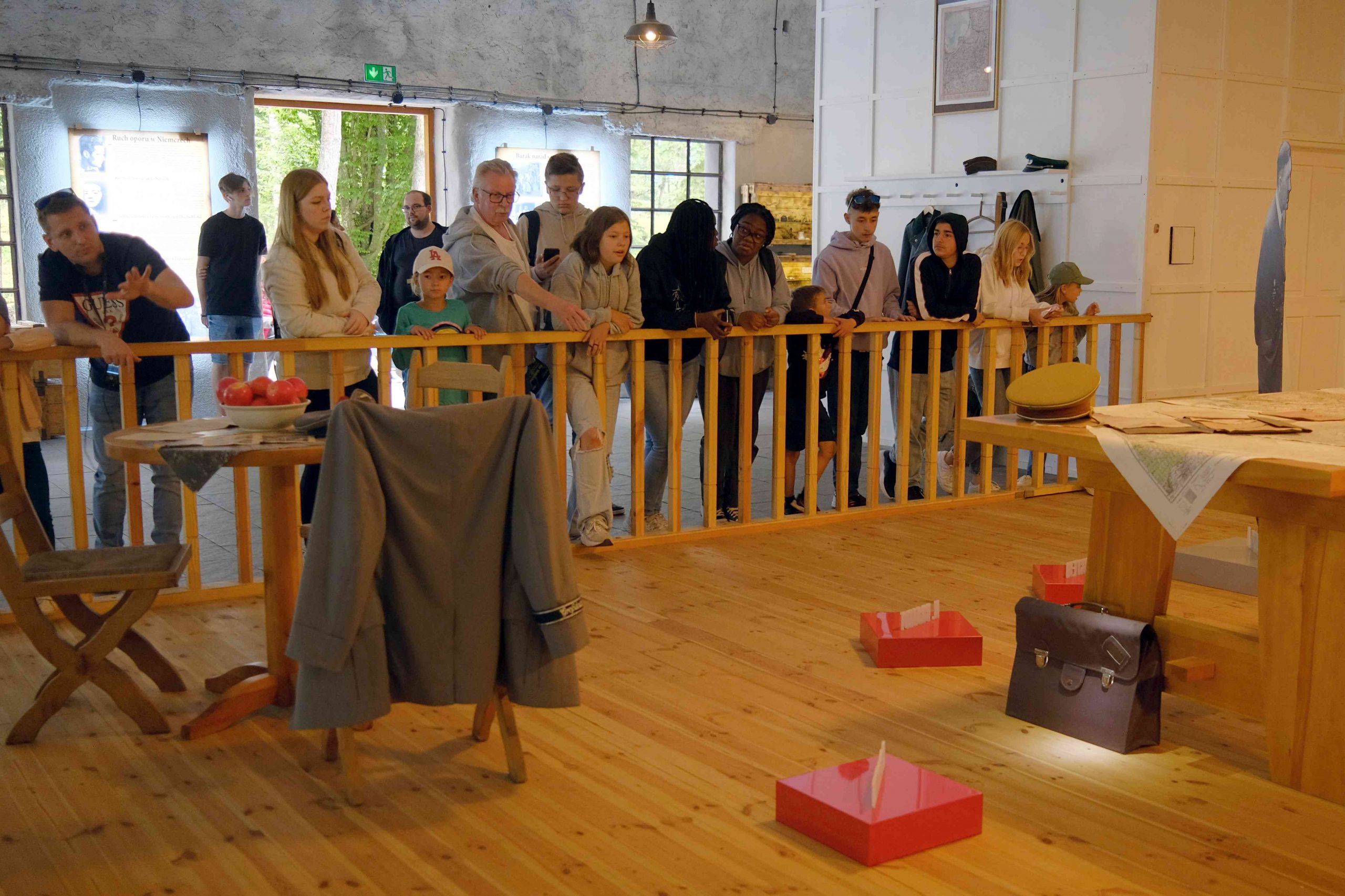 Nachbau der Baracke in der Claus Schenk von Stauffenberg sein riskantes Attentat auf den Diktator Hitler durchgeführt hat. Im Vordergrund die Aktentasche mit dem Sprengstoff. Das Attentat gelang leider nicht. Eine sehr mutige Tat aller Beteiligten, die sie mit ihrem Leben bezahlt haben.