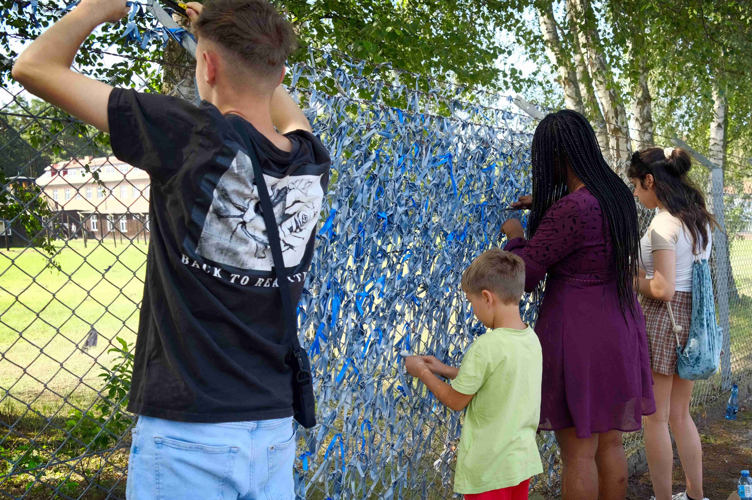 Zum Ende des Workshops im Konzentrationslager haben wir gerne gemeinnützig gearbeitet. Wir haben Teile der Erinnerungsbändchen einer KL-Aktion entfernt.