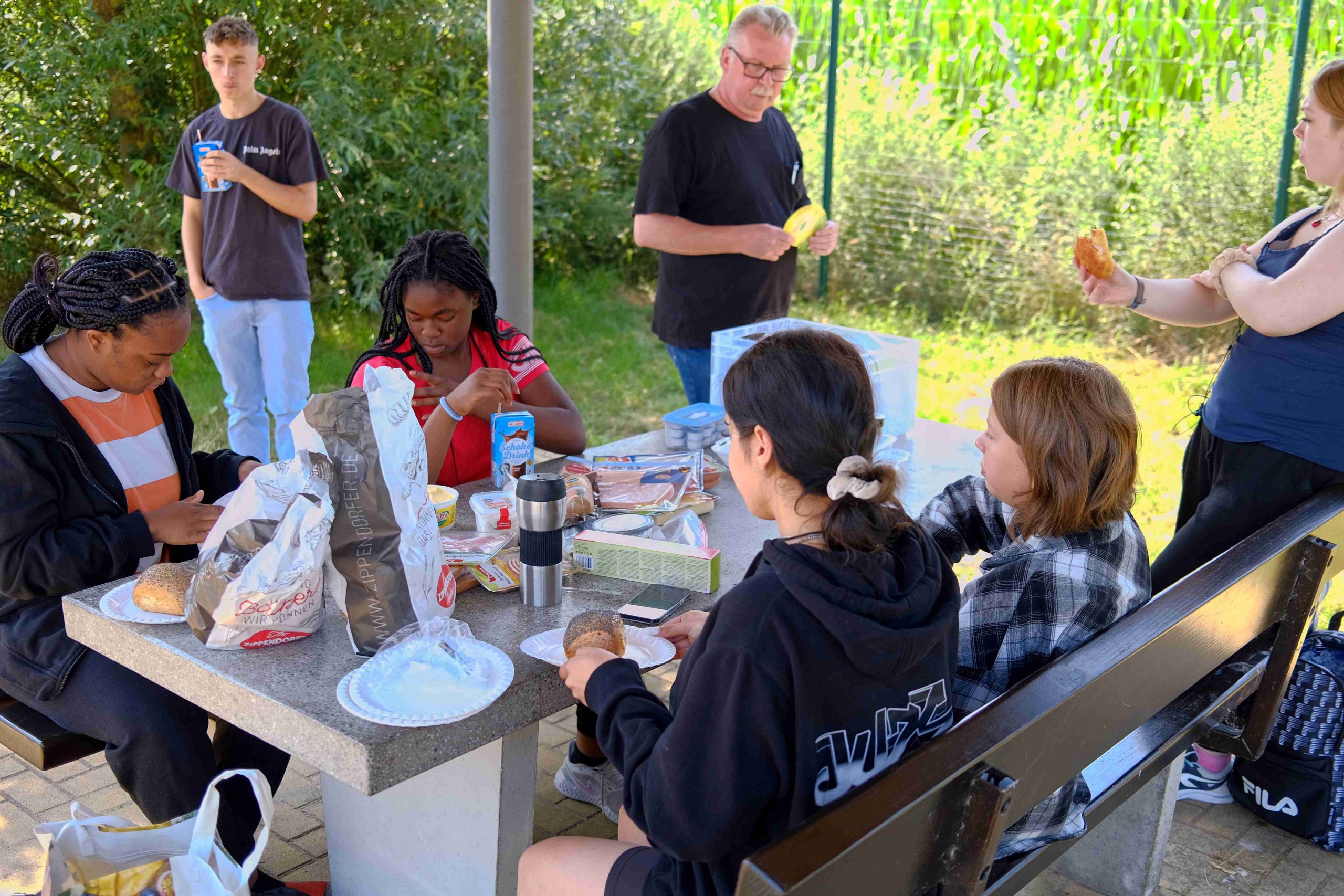 Weil wir „mitten in der Nacht“ um 8 Uhr morgens und viele Teilnehmer ohne Frühstück losgefahren sind, haben wir eine Frühstückspause auf der Autobahnraststätte gemacht.