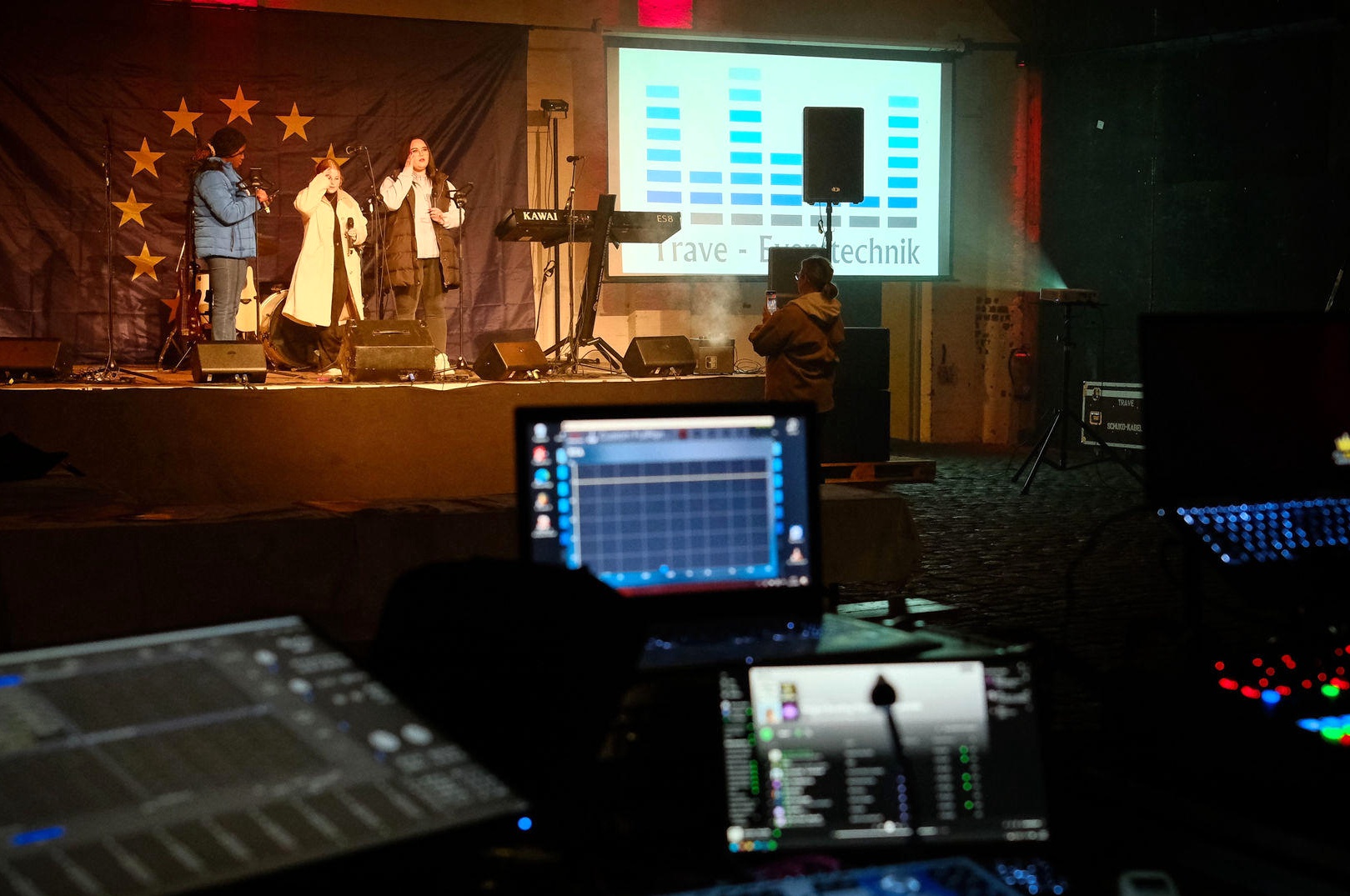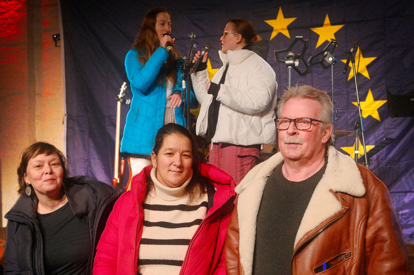 Auf der Bühne Viktoria und Polina, unsere neuen ukrainischen Sängerinnen. Fraktionsmitglieder Karin Burakowski (Grüne) und Mascha Benecke (SPD) haben unsere Veranstaltung besucht und nicht nur über Europa vorgetragen, sondern sich mit den Sorgen und Vorschlägen der Jugendlichen auseinandergesetzt.. Dabei haben wir einige neue Konzepte besprochen und wir sind uns einig, dass wir in 2023 interessante Veranstaltungen durchführen werden. Wir freuen uns schon darauf.