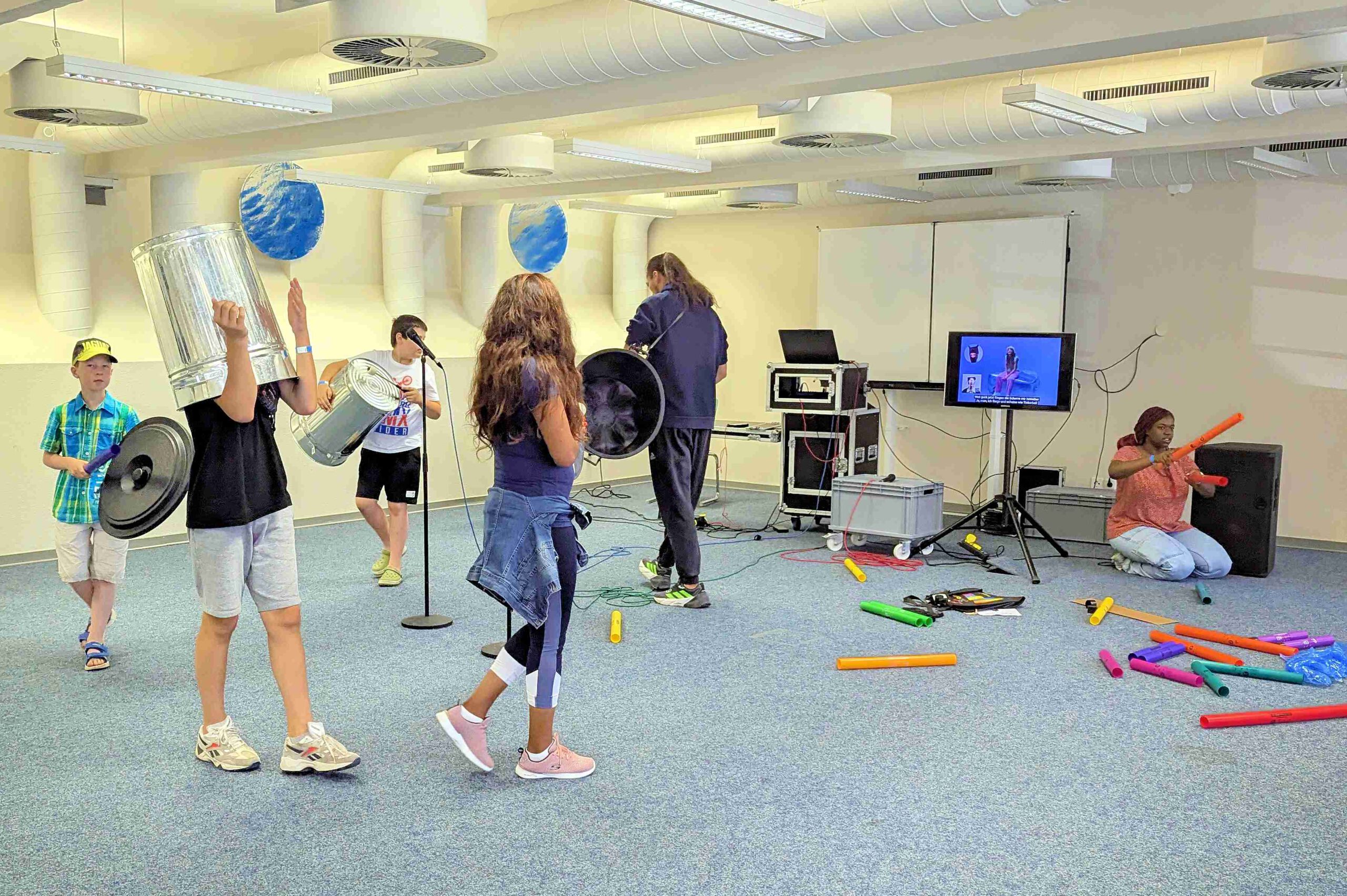 Die Rhythmusgruppe „Krachmacher“ beim Rundgang mit Sound.