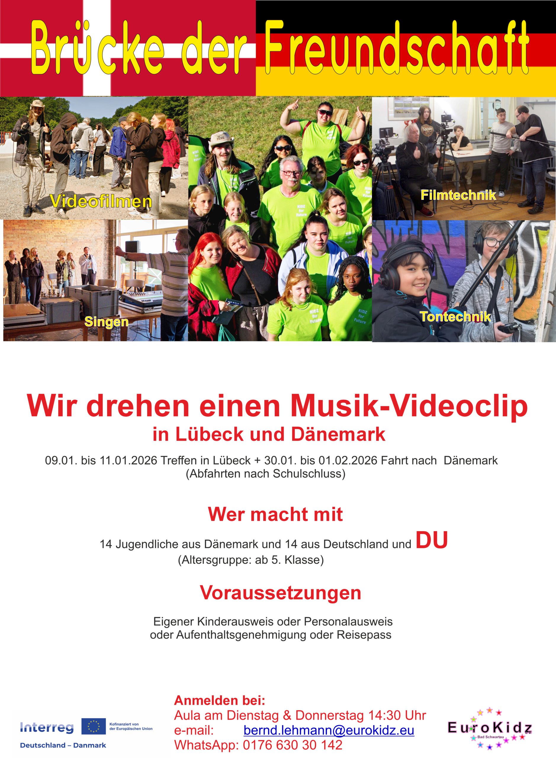 Gemeinsam wollen wir ein Musikvideo theoretisch entwickeln und die Arbeits-Wochenenden planen und in Dänemark praktisch zu einem Musikvideo umsetzen. Es ist ein anspruchsvollen Projekt und sehr aufwändig in der Produktion. Wir trauen den Jugendlichen einiges zu. Sie werden es sicher schaffen.