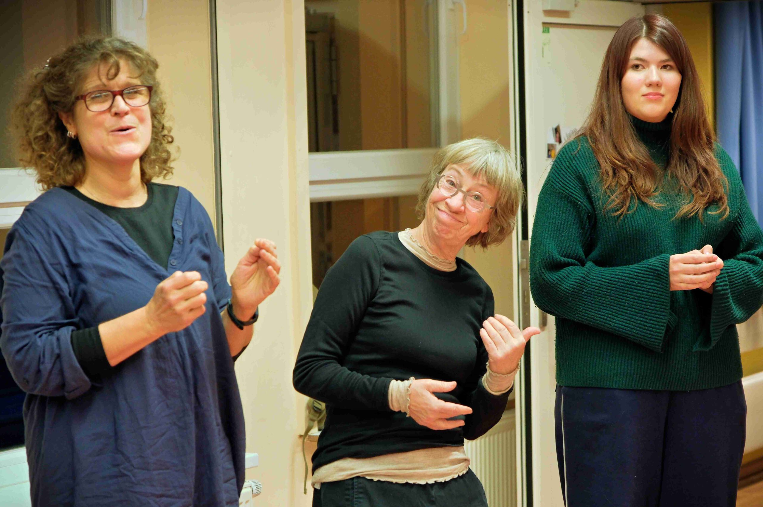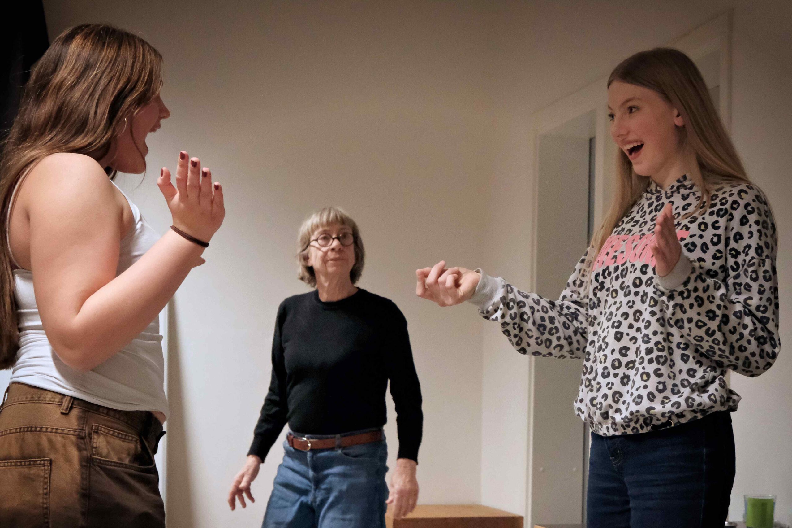 Zuerst machen wir mal ein paar Aufwärm- und Kennenlernübungen. Und schon ist alles viel spaßiger.