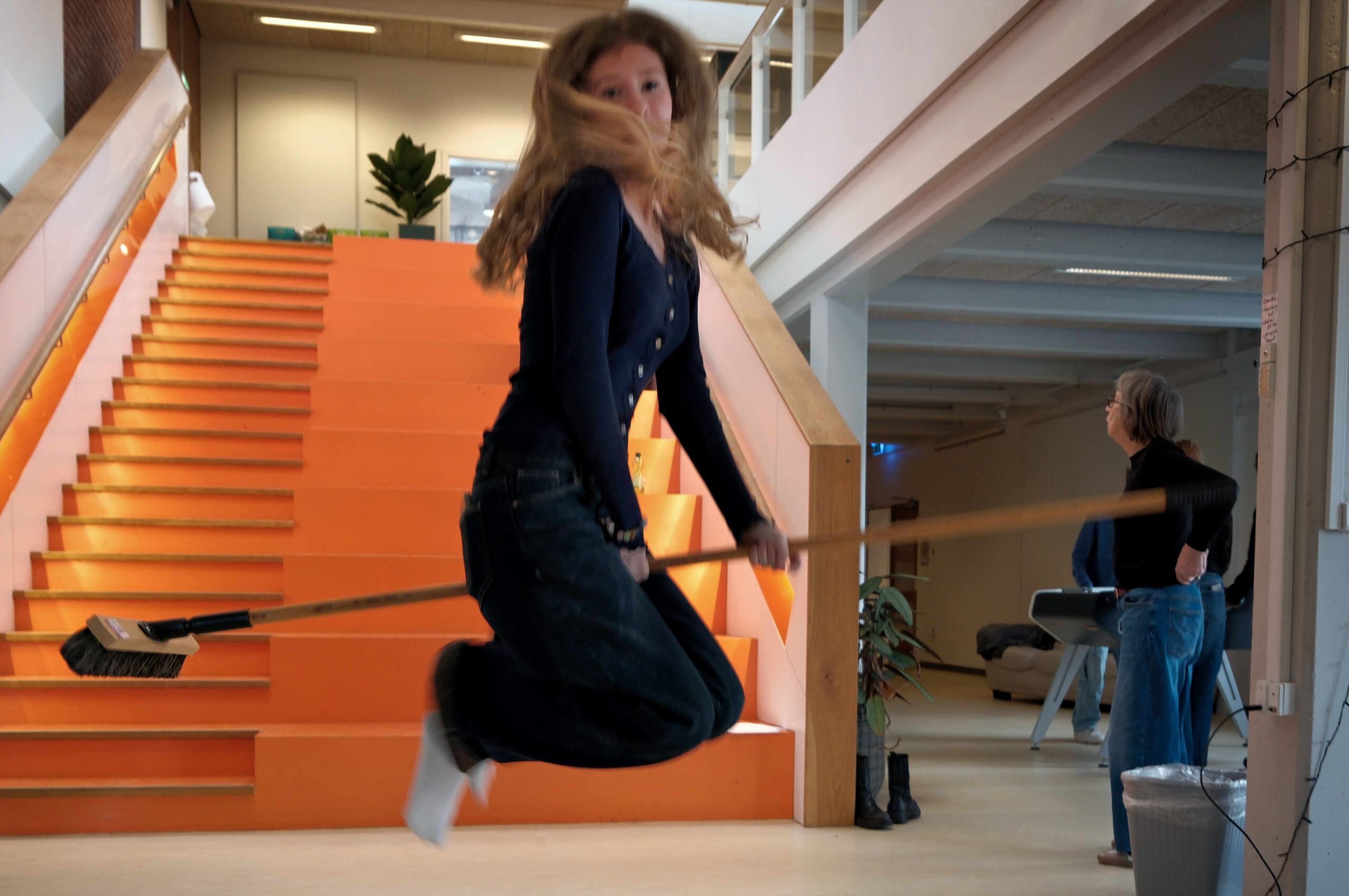 Und dann wurde es ernst. Die Schauspielerinnen mussten lernen die Besen zu beherrschen und auf ihnen eine Runde zu fliegen.