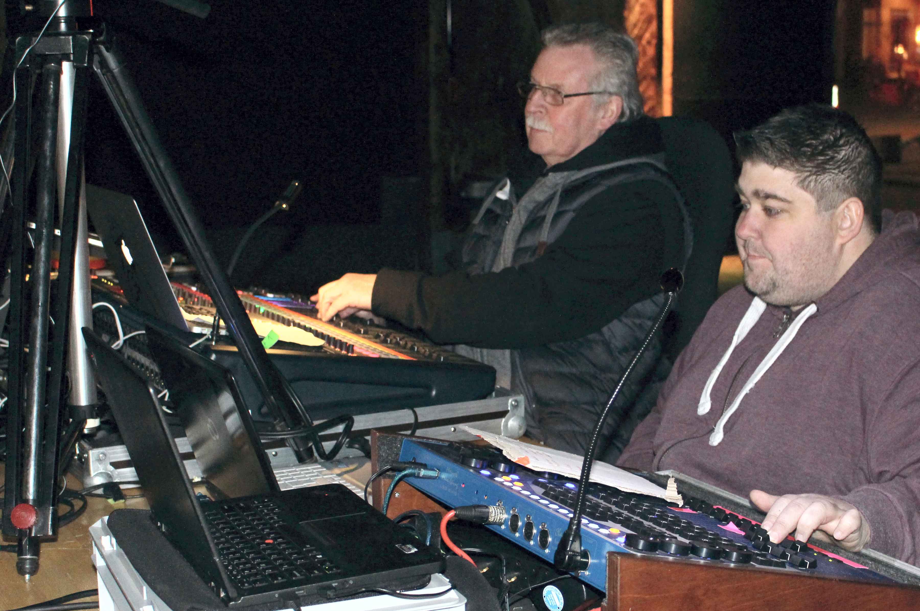 Bernd und DJ Tim beim Soundcheck an der Technik.