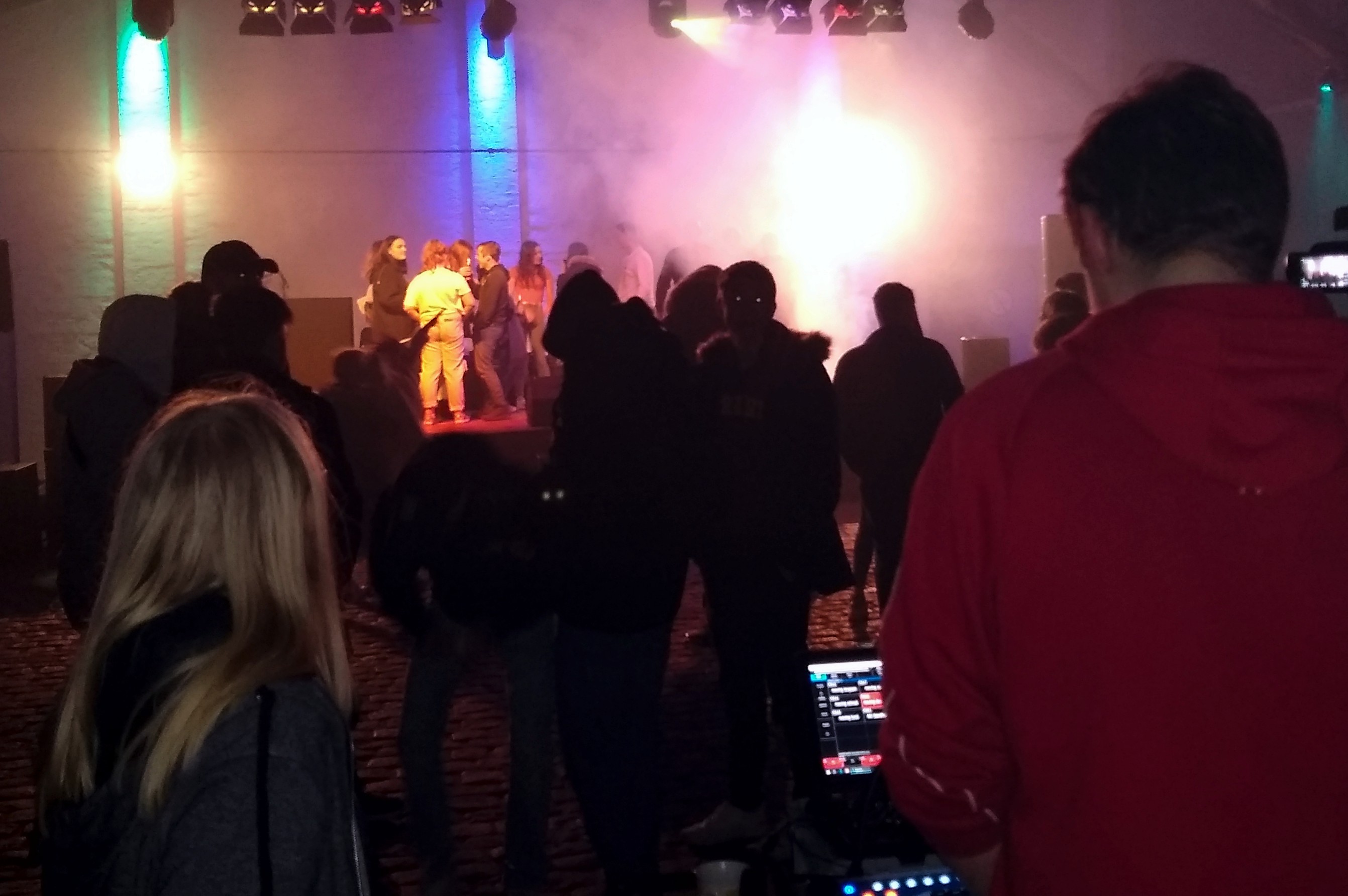 Inzwischen füllt sich der Schuppen. DJ Tim hat das Programm übernommen und gibt alles. Licht, Sound und Nebel.